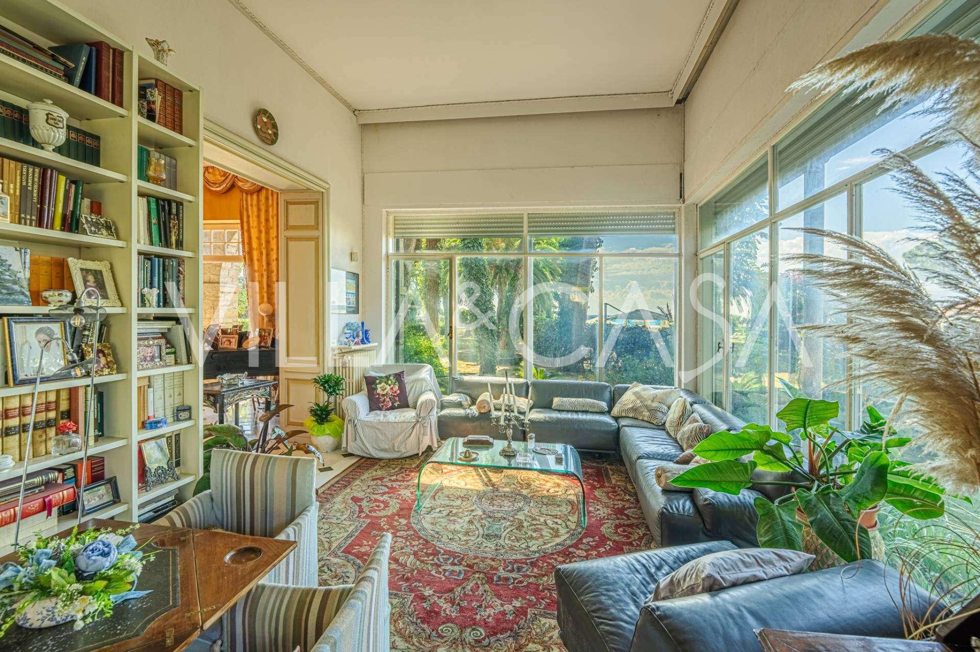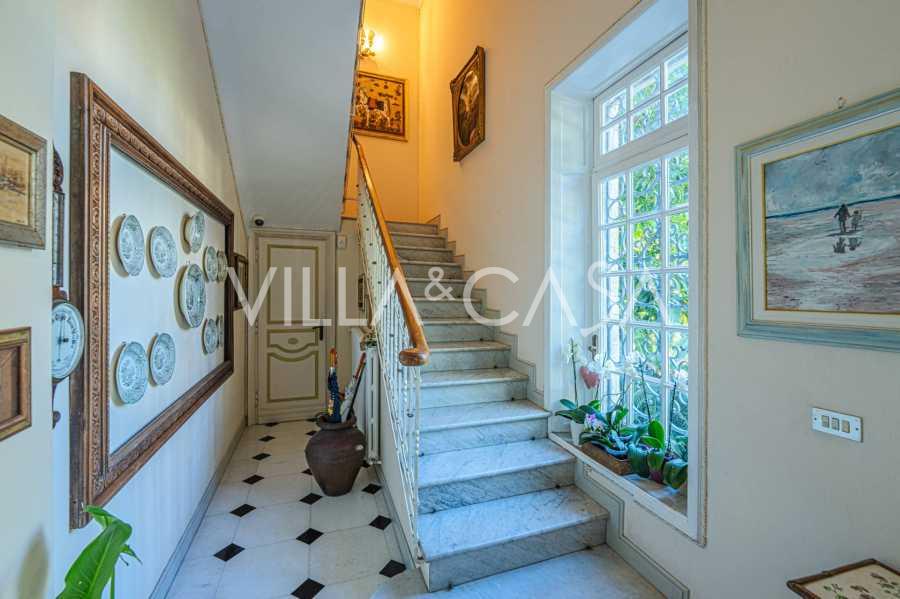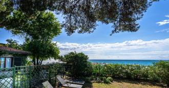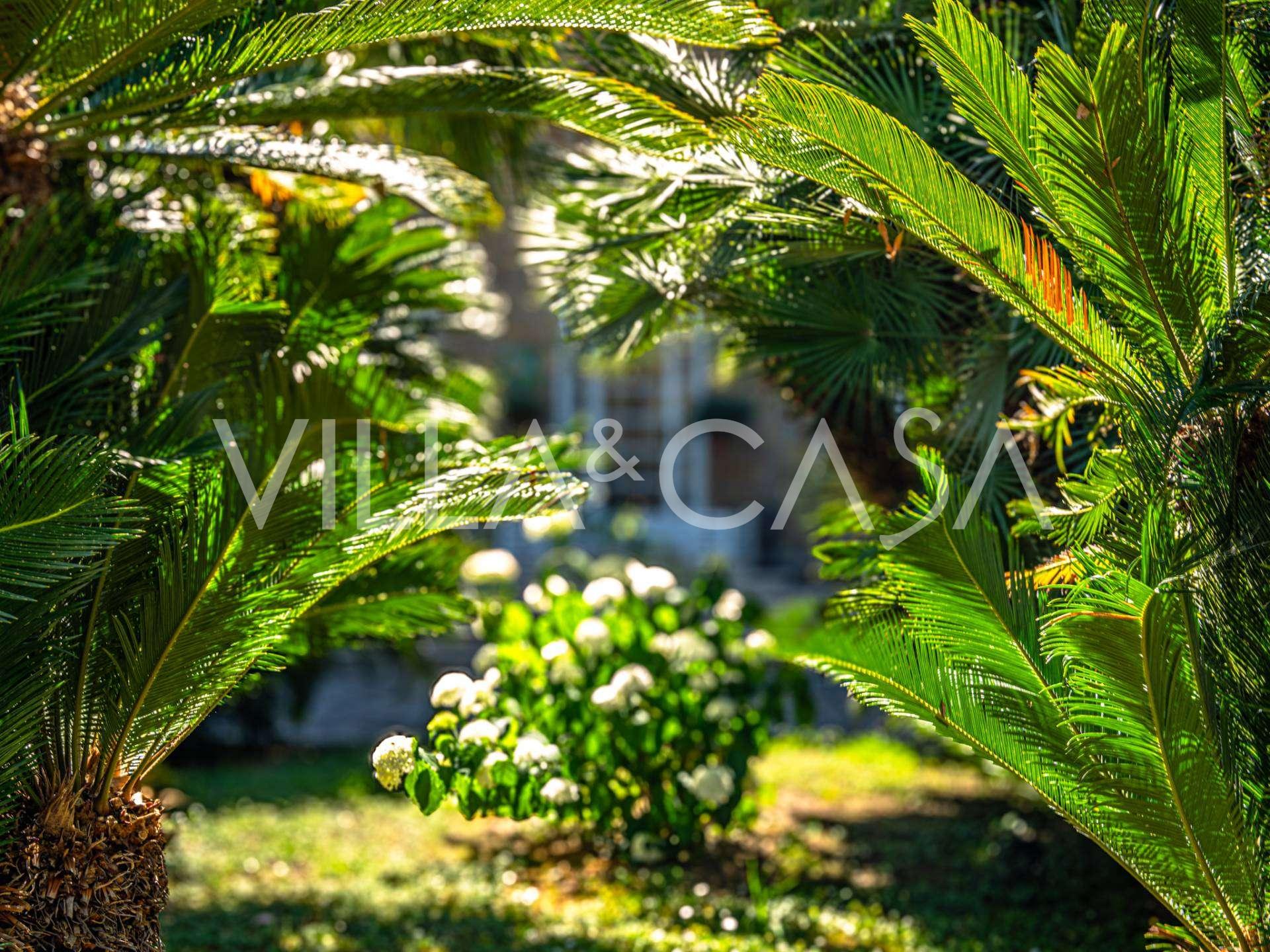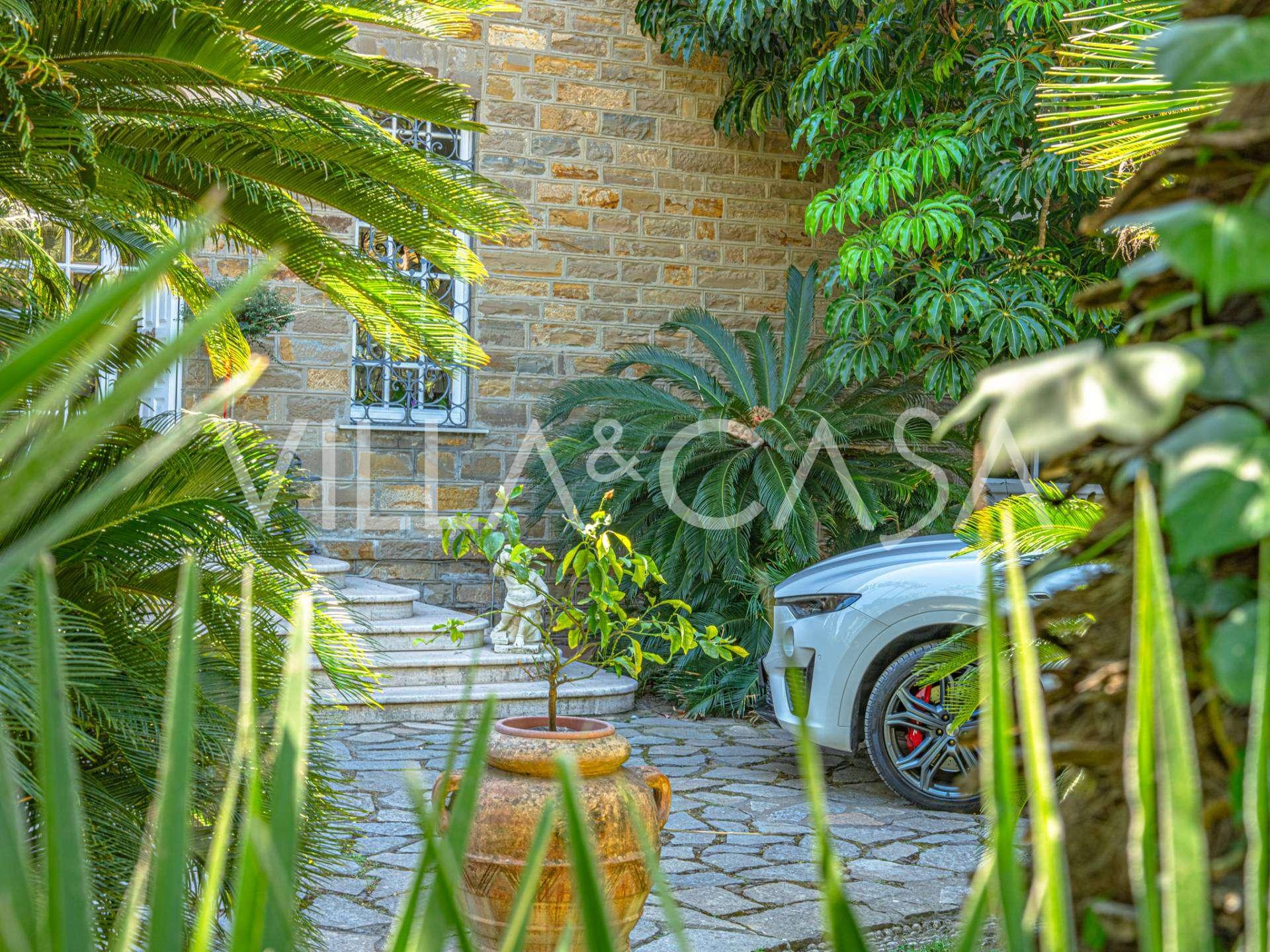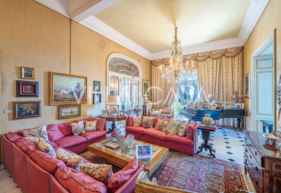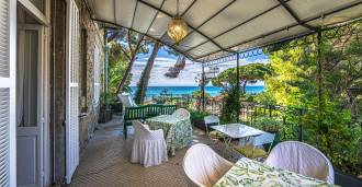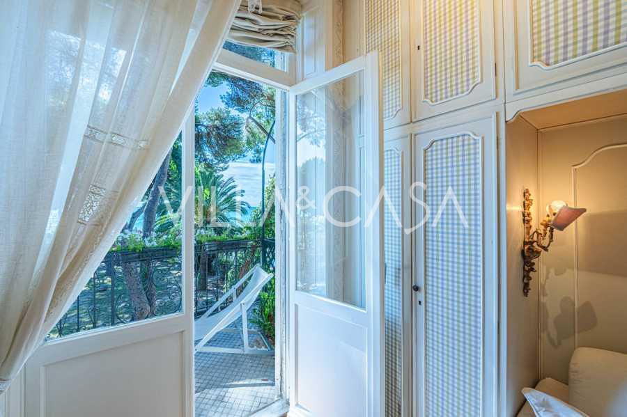 Πωλείται κομψή βίλα στην πρώτη γραμμή παραλίας στο Ντιάνο Μαρίνα, σχεδιασμένη σε αγγλικό στυλ, με έκταση περίπου 628 τ.μ., κατανεμημένη σε τέσσερα επίπεδα. Διαθέτει άμεση πρόσβαση στη θάλασσα και την αμμώδη παραλία. Η βίλα περιβάλλεται από εκτεταμένο πάρκο περίπου 5000 τ.μ. με αιωνόβια μεσογειακά έλατα.