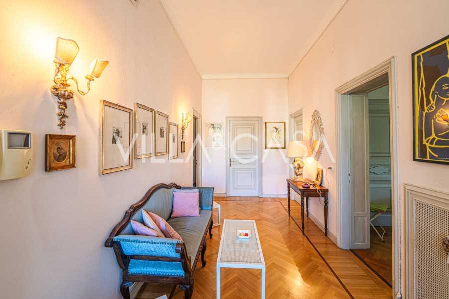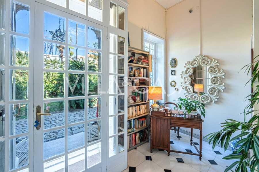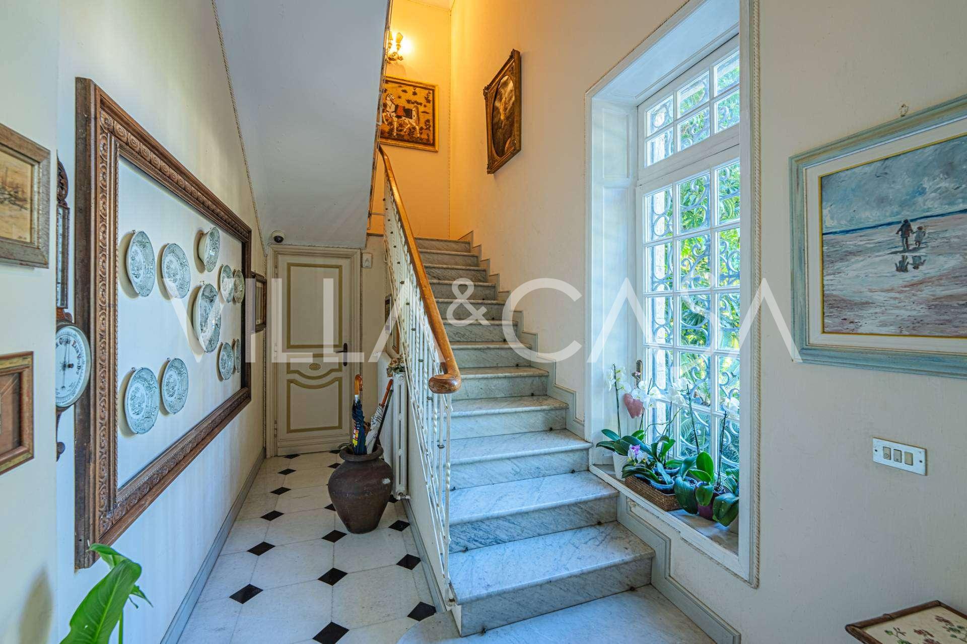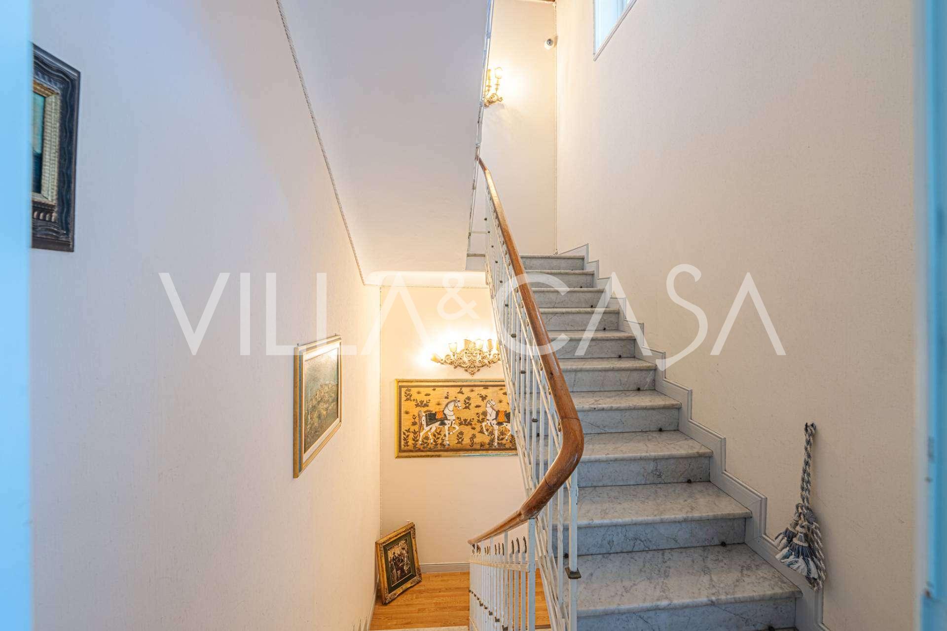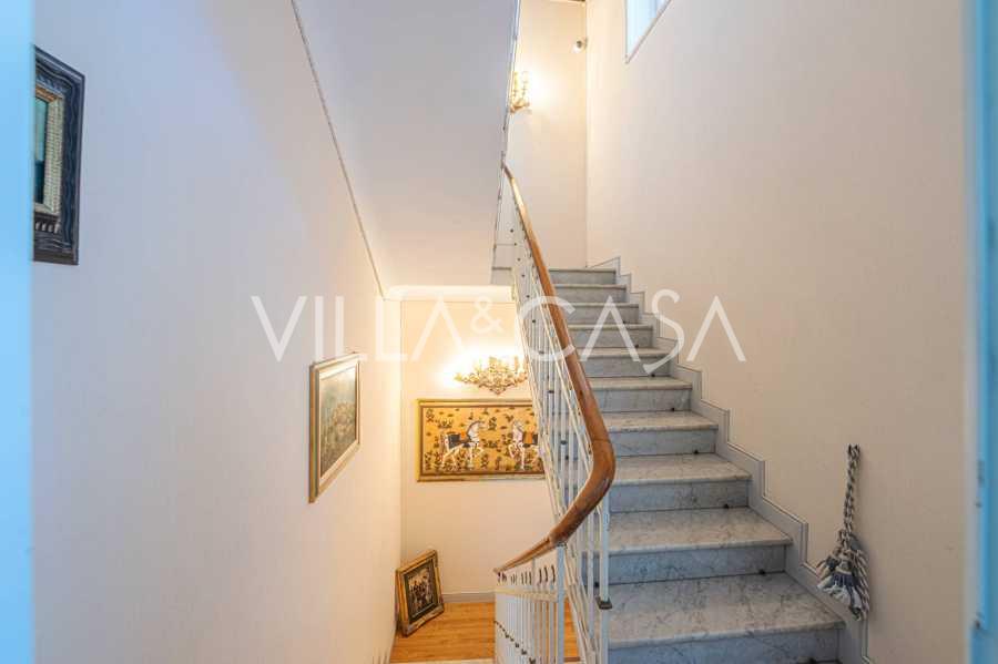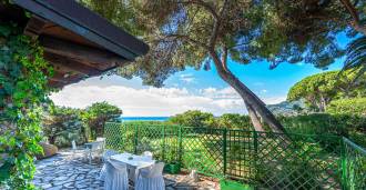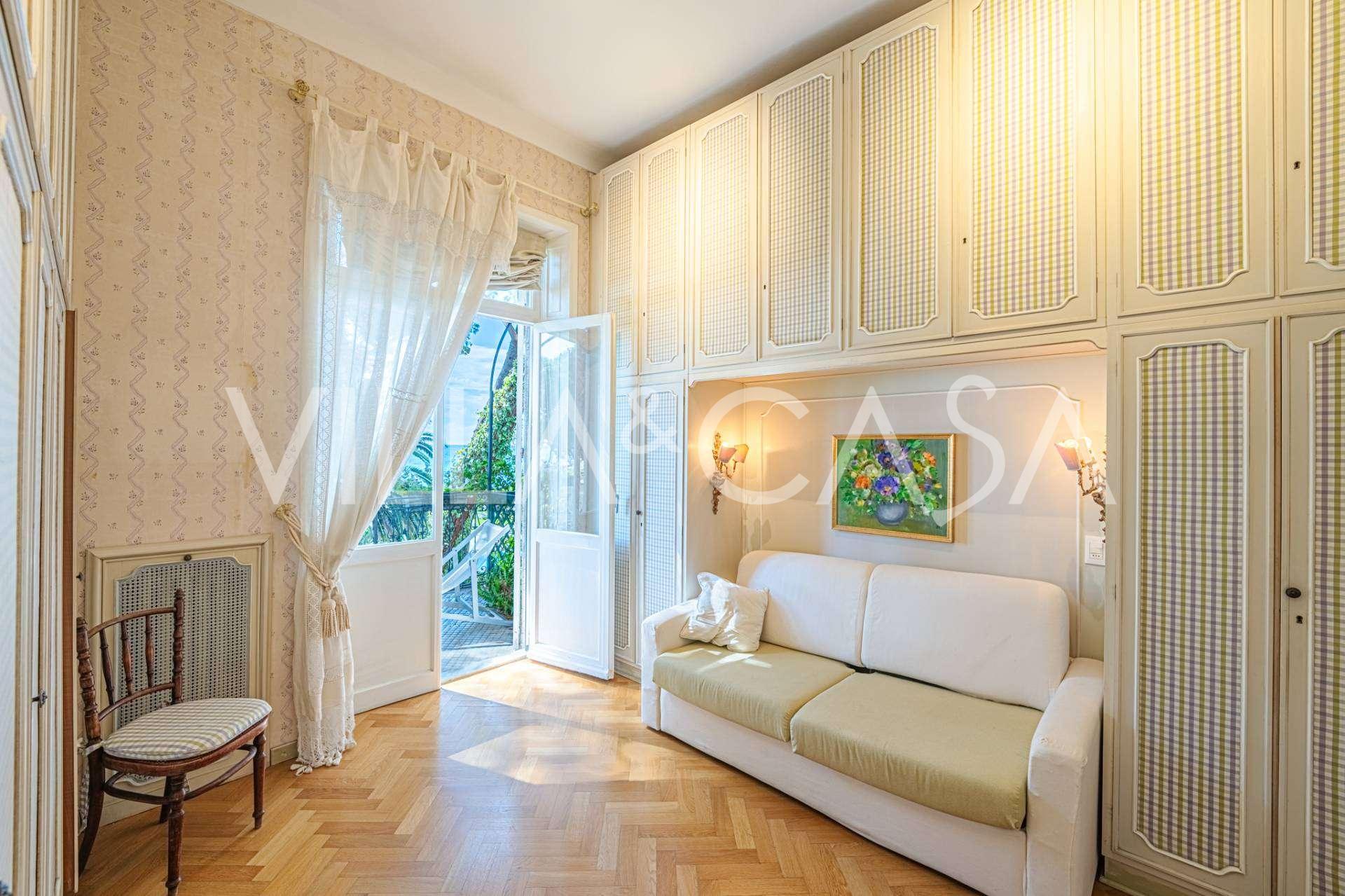 Πωλείται κομψή βίλα στην πρώτη γραμμή παραλίας στο Ντιάνο Μαρίνα, σχεδιασμένη σε αγγλικό στυλ, με έκταση περίπου 628 τ.μ., κατανεμημένη σε τέσσερα επίπεδα. Διαθέτει άμεση πρόσβαση στη θάλασσα και την αμμώδη παραλία. Η βίλα περιβάλλεται από εκτεταμένο πάρκο περίπου 5000 τ.μ. με αιωνόβια μεσογειακά έλατα.