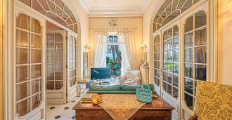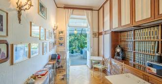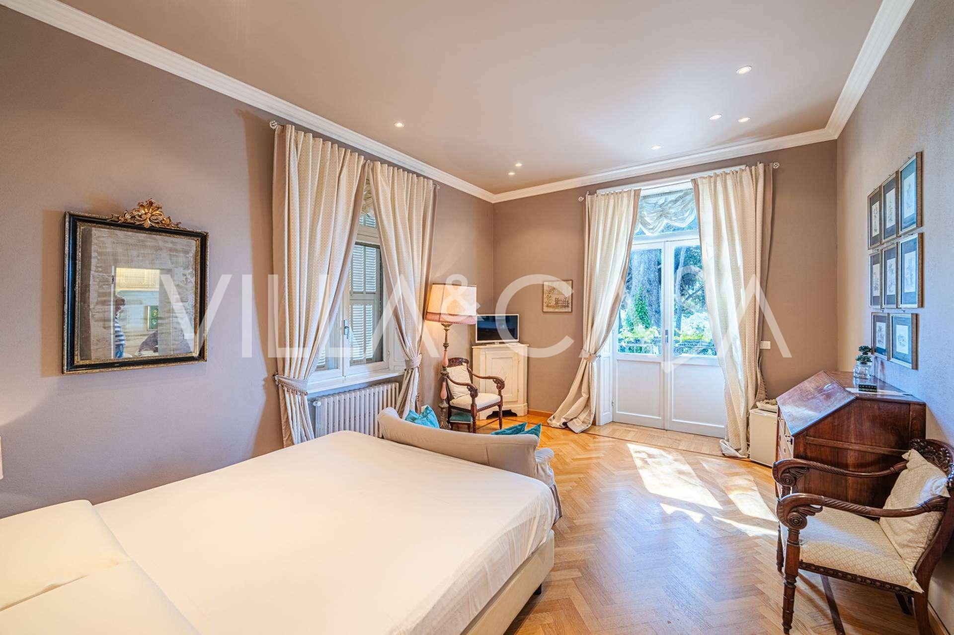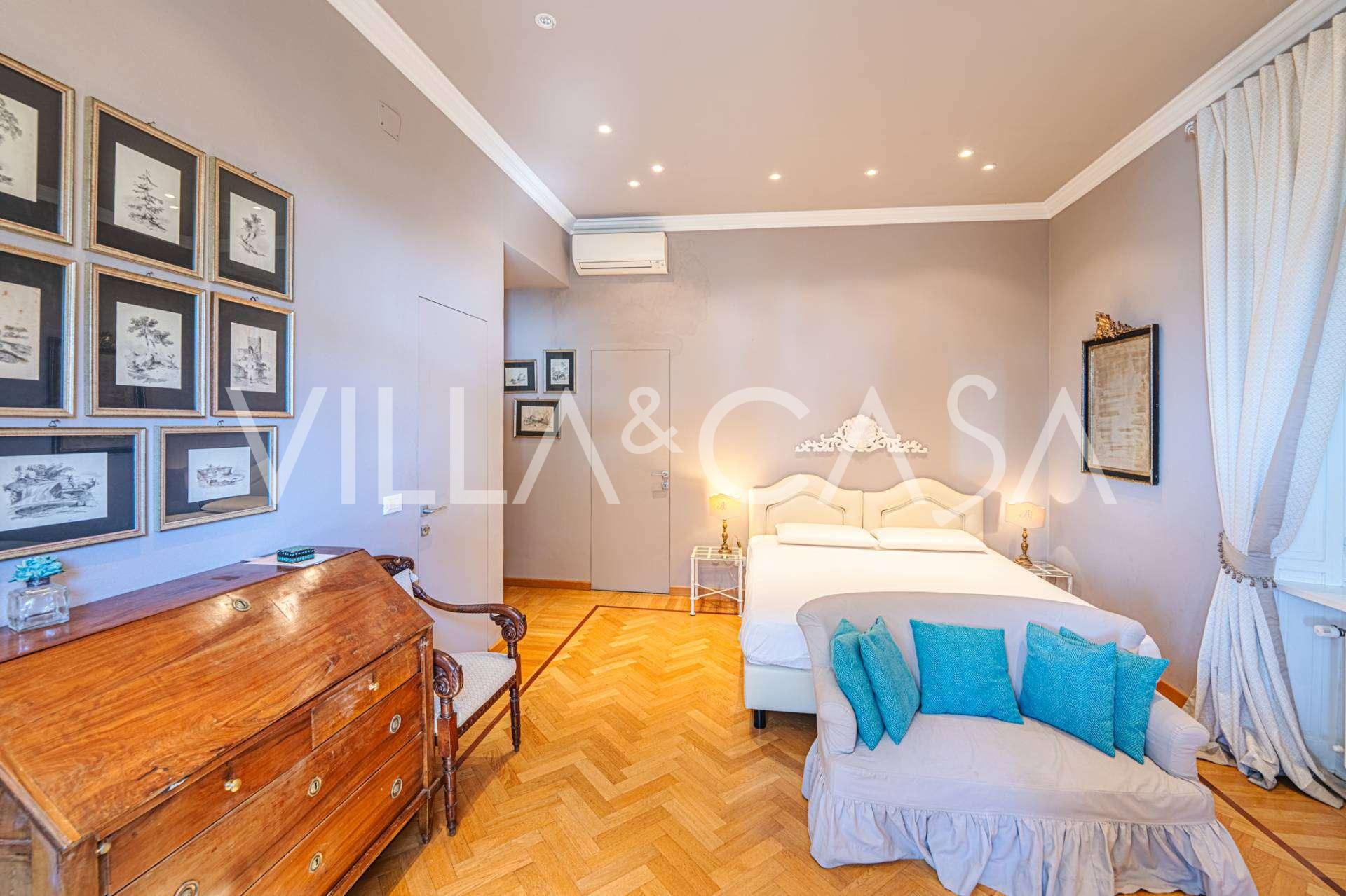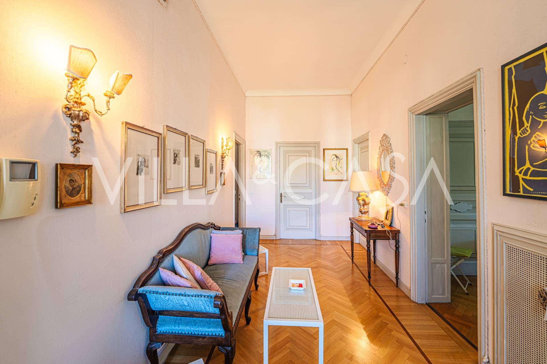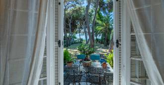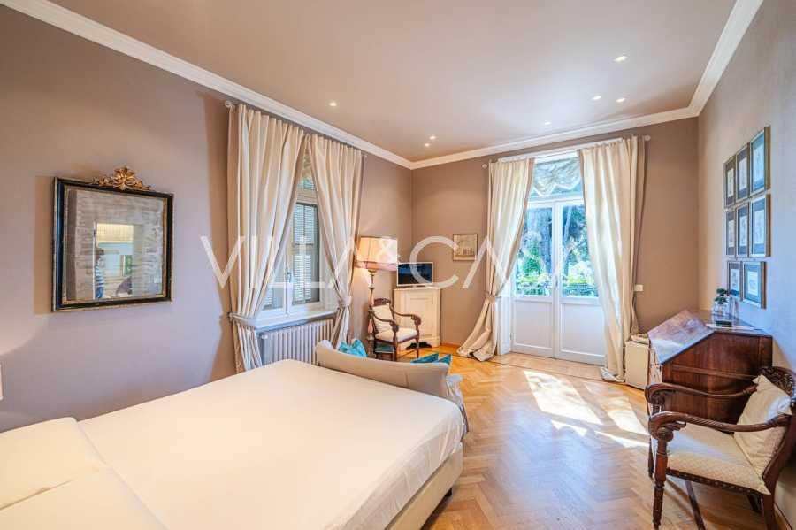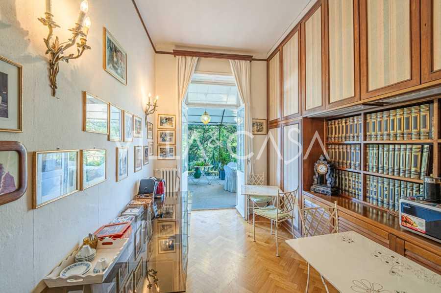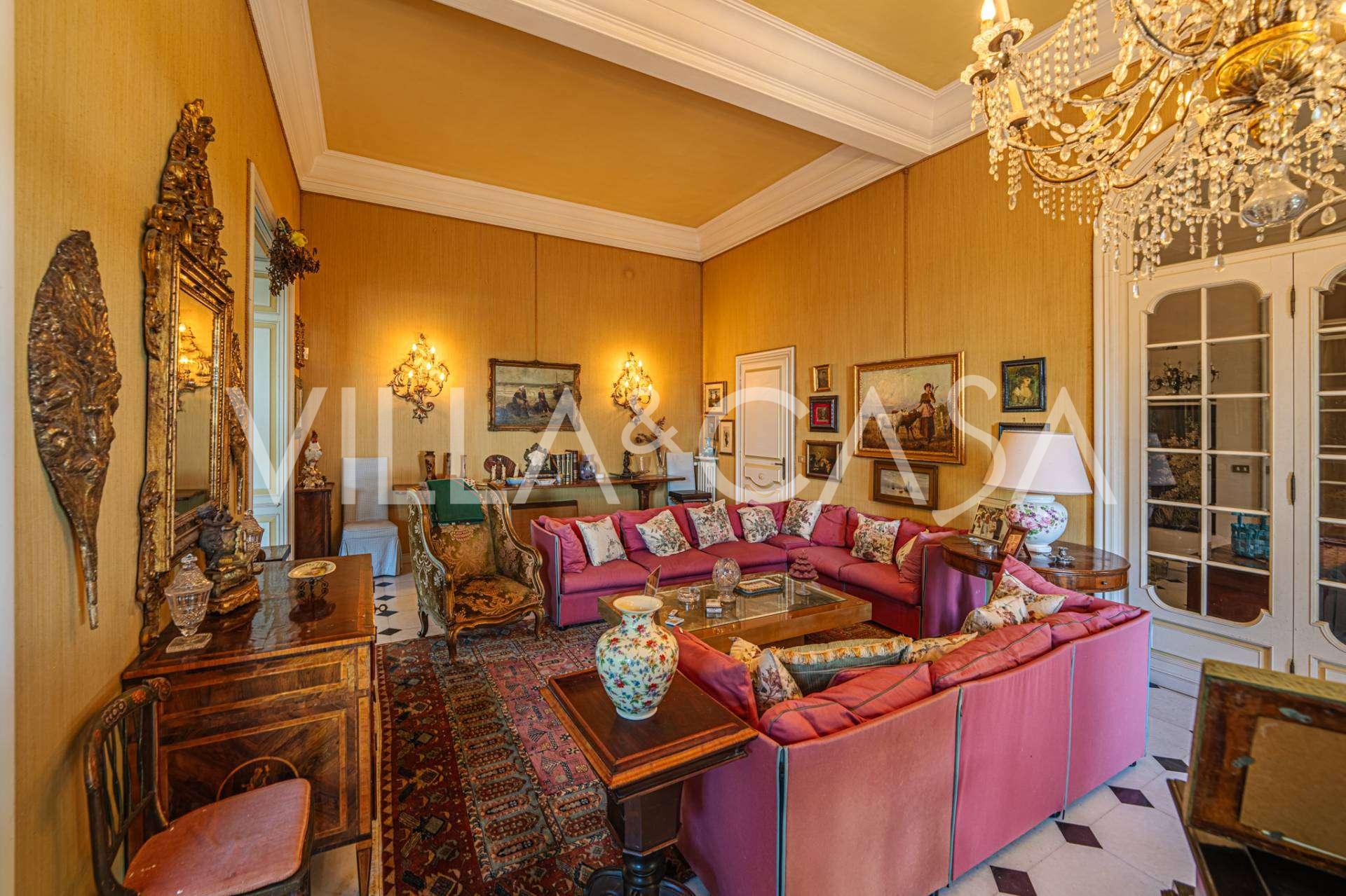 Πωλείται κομψή βίλα στην πρώτη γραμμή παραλίας στο Ντιάνο Μαρίνα, σχεδιασμένη σε αγγλικό στυλ, με έκταση περίπου 628 τ.μ., κατανεμημένη σε τέσσερα επίπεδα. Διαθέτει άμεση πρόσβαση στη θάλασσα και την αμμώδη παραλία. Η βίλα περιβάλλεται από εκτεταμένο πάρκο περίπου 5000 τ.μ. με αιωνόβια μεσογειακά έλατα.