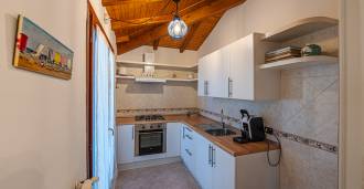 Τρίτο επίπεδο: αίθουσα με τζάκι, ξεχωριστή κουζίνα, δύο υπνοδωμάτια, αποθήκη.