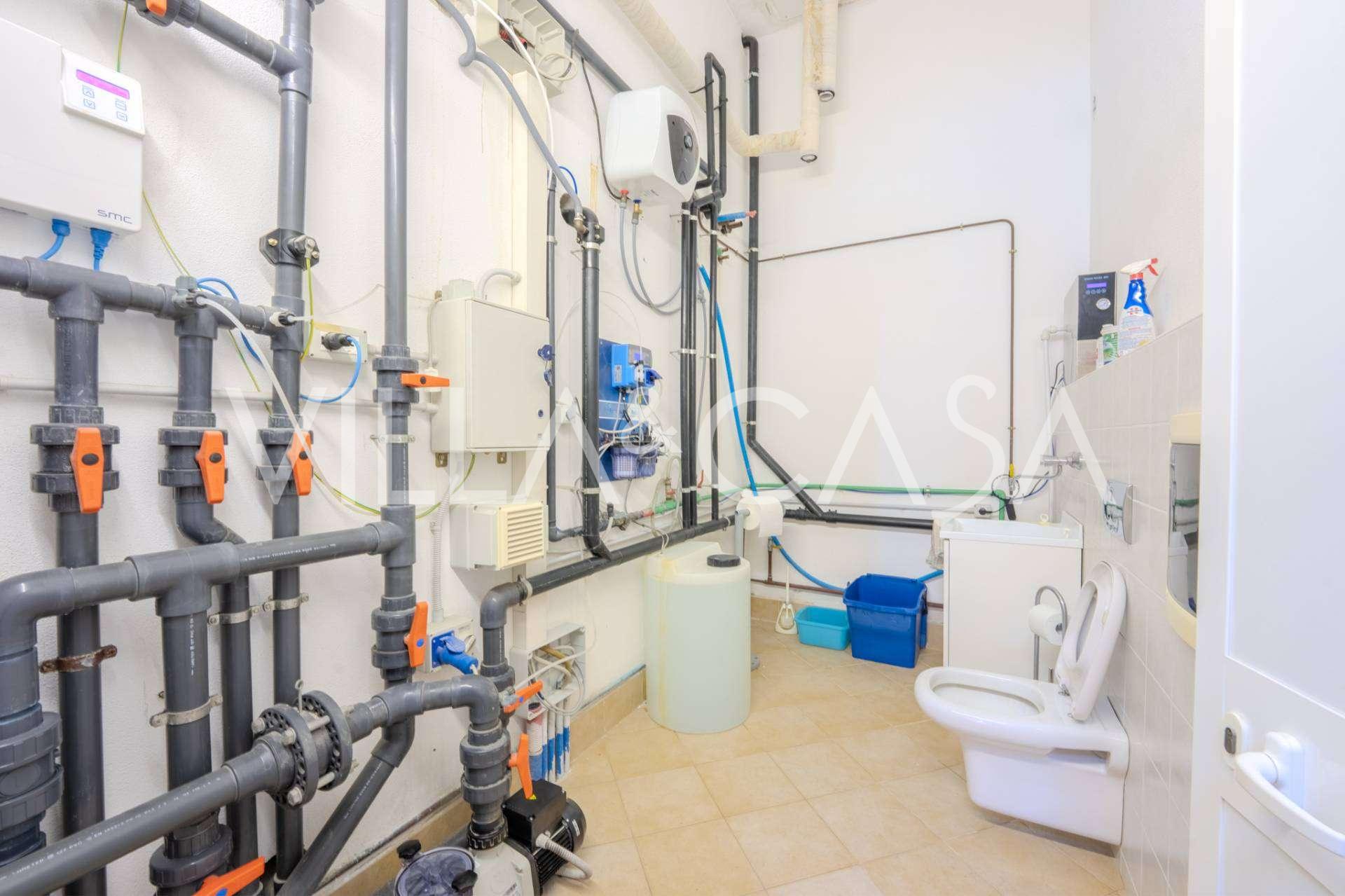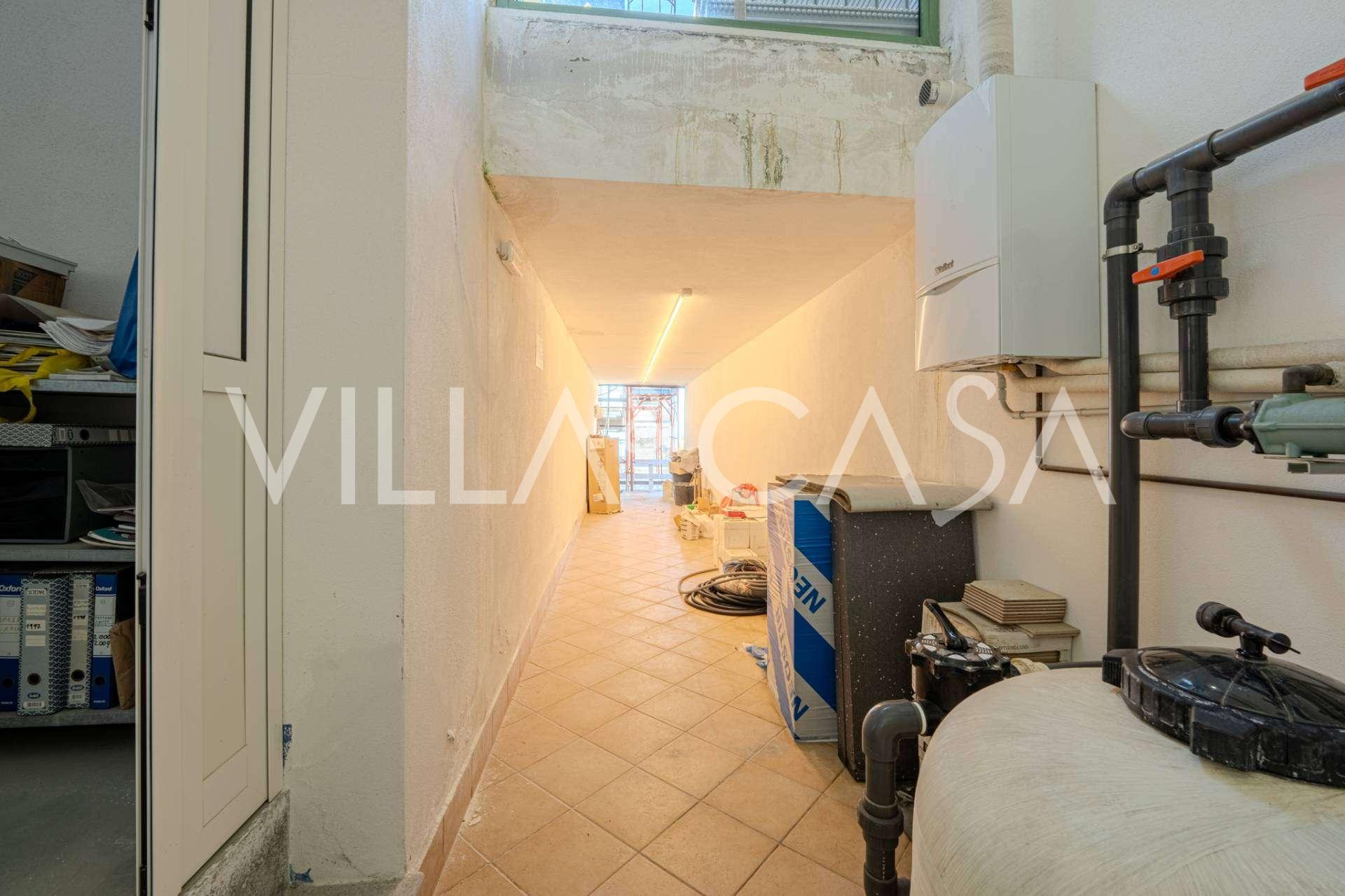 Αυτόνομο σύστημα θέρμανσης. Μεγάλο γκαράζ για 4 αυτοκίνητα, εξοπλισμένο γυμναστήριο. Στο οικόπεδο υπάρχει πισίνα με καλοκαιρινή κουζίνα, χώρος για μπάρμπεκιου, κήπος και θέσεις στάθμευσης αυτοκινήτων. Επίσης, στο οικόπεδο μπορεί να διαμορφωθεί επιπλέον κλειστός χώρος αναψυχής. Η έκταση του οικοπέδου είναι περίπου 2000 τ.μ.