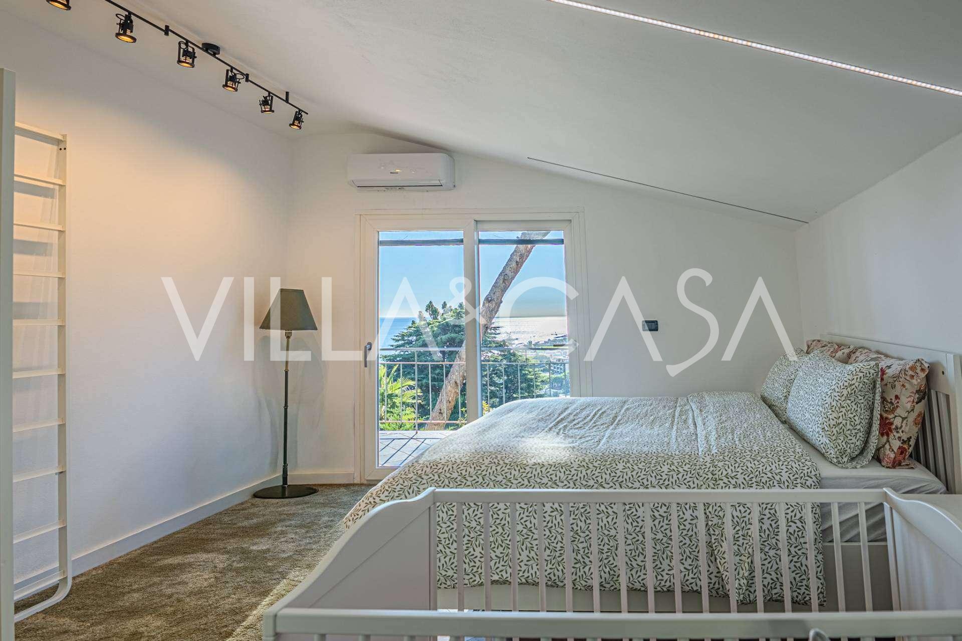 Ο ανώτερος όροφος αποτελεί μια ιδιωτική ζώνη με δύο ευρύχωρα υπνοδωμάτια, καθένα από τα οποία οδηγεί σε βεράντα με εκπληκτική πανοραμική θέα. Οι πρωινές ανατολές και οι βραδινές δύσεις, που αντανακλώνται στα νερά της Λιγουριανής θάλασσας, δημιουργούν μια ατμόσφαιρα γαλήνης και ρομαντισμού.