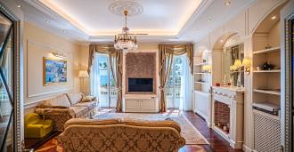 Κάθε λεπτομέρεια της διακόσμησης είναι έργο τέχνης: τοίχοι από φυσικό ξύλο, νουμπούκ και δέρμα· υψηλής ποιότητας παρκέ· βενετσιάνικο στόκο· μοναδικές πόρτες και έπιπλα από την Bucalossi· αυθεντικός σχεδιασμός φωτισμού — αποκλειστικοί χειροποίητοι πολυέλαιοι· εκλεπτυσμένοι πίνακες, δημιουργημένοι κατόπιν παραγγελίας ειδικά για αυτόν τον χώρο, που αντικατοπτρίζουν την ατμόσφαιρα του Ospedaletti. Τα παράθυρα και οι μπαλκονόπορτες είναι κατασκευασμένα με ειδικό σχέδιο για μέγιστη άνεση και θερμομόνωση.