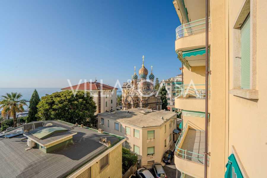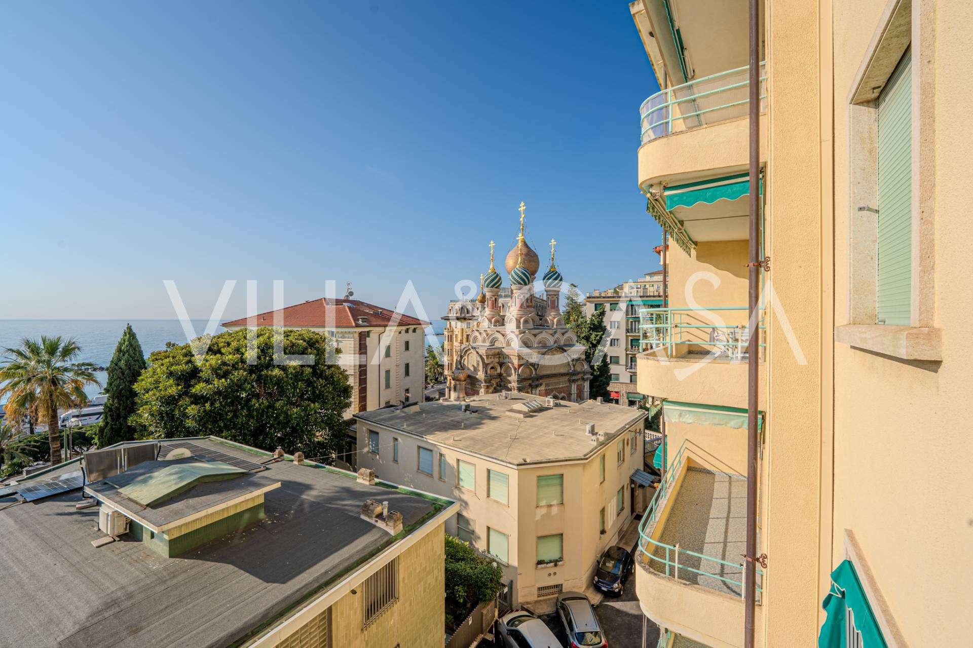 Ευρύχωρο τεσσάρι διαμέρισμα βρίσκεται στο κέντρο του Σανρέμο, απέναντι από την όμορφη Ρωσική Εκκλησία, σε ένα πολυτελές συγκρότημα κατοικιών με καλοδιατηρημένο χώρο. Το διαμέρισμα καλύπτει 104 τ.μ. και βρίσκεται στον τέταρτο όροφο, προσφέροντας θέα στη θάλασσα και την μοναδική αρχιτεκτονική της Ρωσικής Εκκλησίας.
