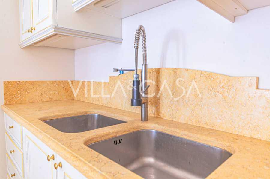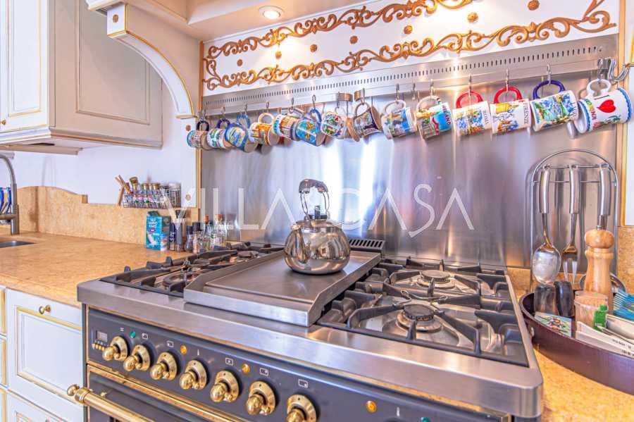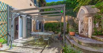 Από την κουζίνα μπορεί κανείς να βγει σε ευρύχωρο ιδιωτικό αίθριο, ιδανικό για καλοκαιρινή ξεκούραση και υποδοχή καλεσμένων: περιοχή μπάρμπεκιου, πέργκολα και κλιμακωτός κήπος δημιουργούν την ατμόσφαιρα μιας απομονωμένης εξοχικής κατοικίας.