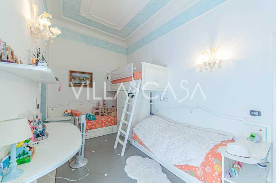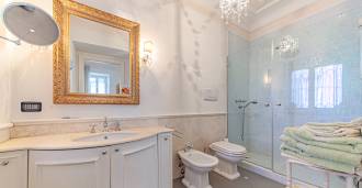 Τα διαμερίσματα, με επιφάνεια άνω των 270 μ², βρίσκονται στον πρώτο όροφο και είναι προσβάσιμα μέσω της ιστορικής κεντρικής σκάλας με τοιχογραφίες και κολώνες από ροζ γρανίτη Baveno. Η ευρύχωρη διάταξη περιλαμβάνει μια μεγαλοπρεπή μαρμάρινη αίθουσα υποδοχής με πανοραμική θέα στη λίμνη, πολυτελές σαλόνι με τζάκι και γύψινα διακοσμητικά, κουζίνα με τραπεζαρία, τουαλέτα επισκεπτών, κομψό μπάνιο, δωμάτιο επισκεπτών, παιδικό δωμάτιο με γκαρνταρόμπα, καθώς και κύριο υπνοδωμάτιο με ιδιωτικό μπάνιο.