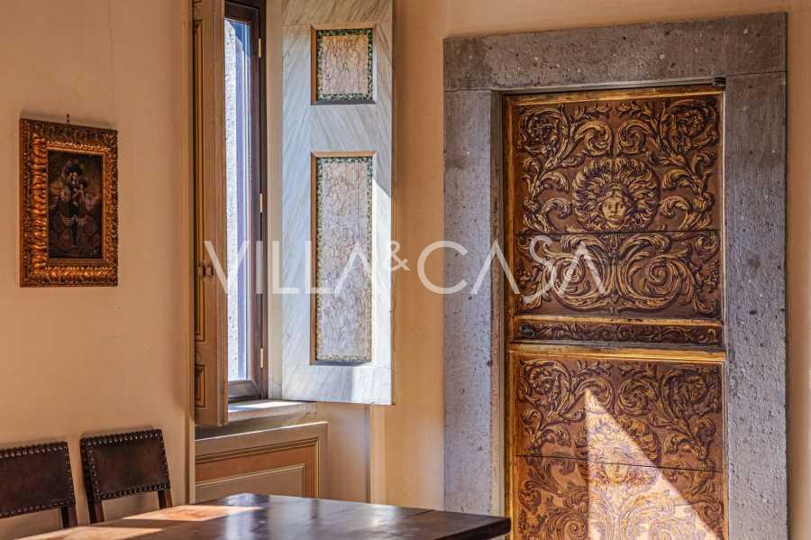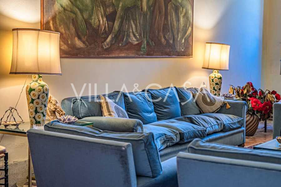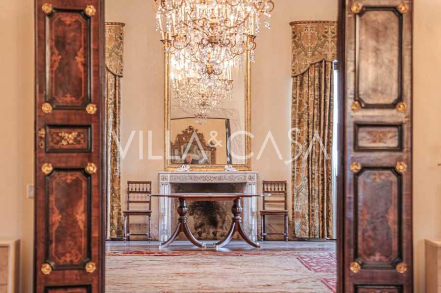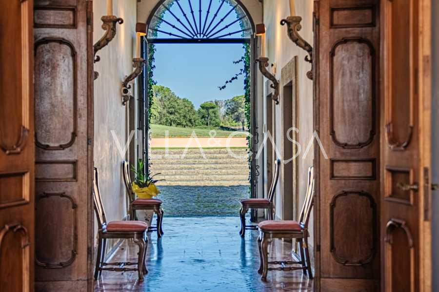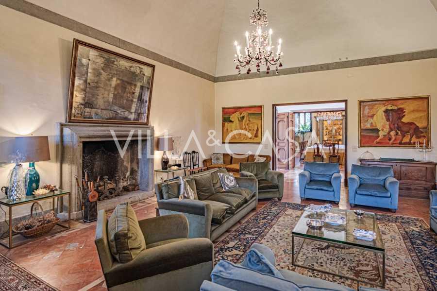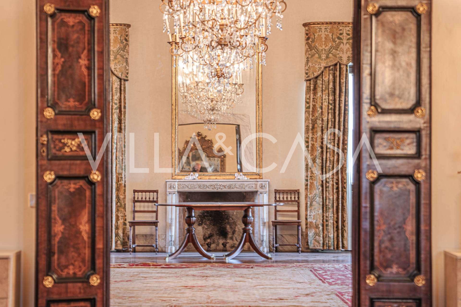 Στον πρώτο όροφο βρίσκονται ευρύχωροι χώροι υποδοχής, γραφείο, υπνοδωμάτιο, τρία μπάνια, εκλεπτυσμένη τραπεζαρία και μεγάλη κουζίνα που συνεχίζεται στο κάτω επίπεδο, όπου βρίσκεται αίθουσα δεξιώσεων, ιδανική για επίσημες εκδηλώσεις.