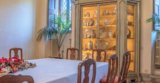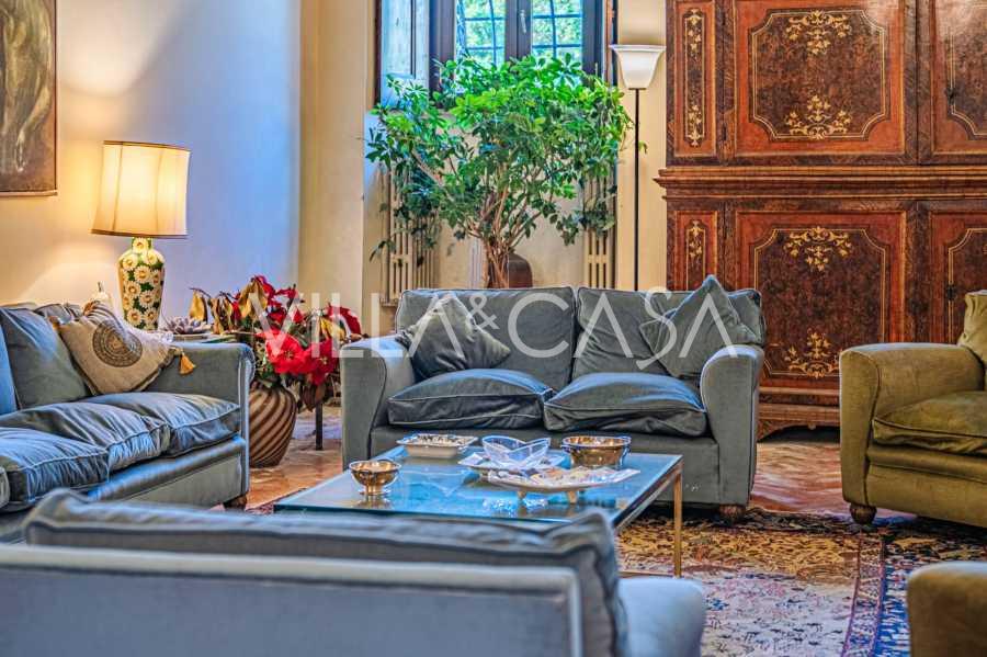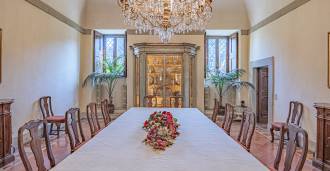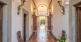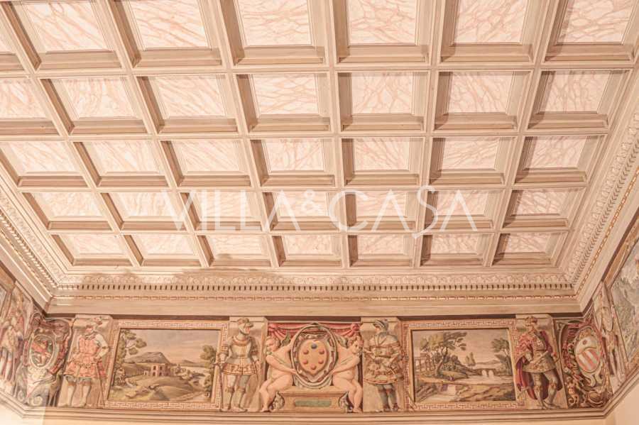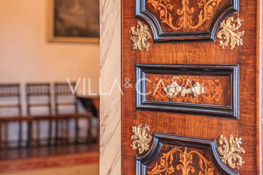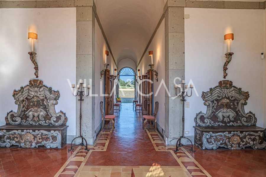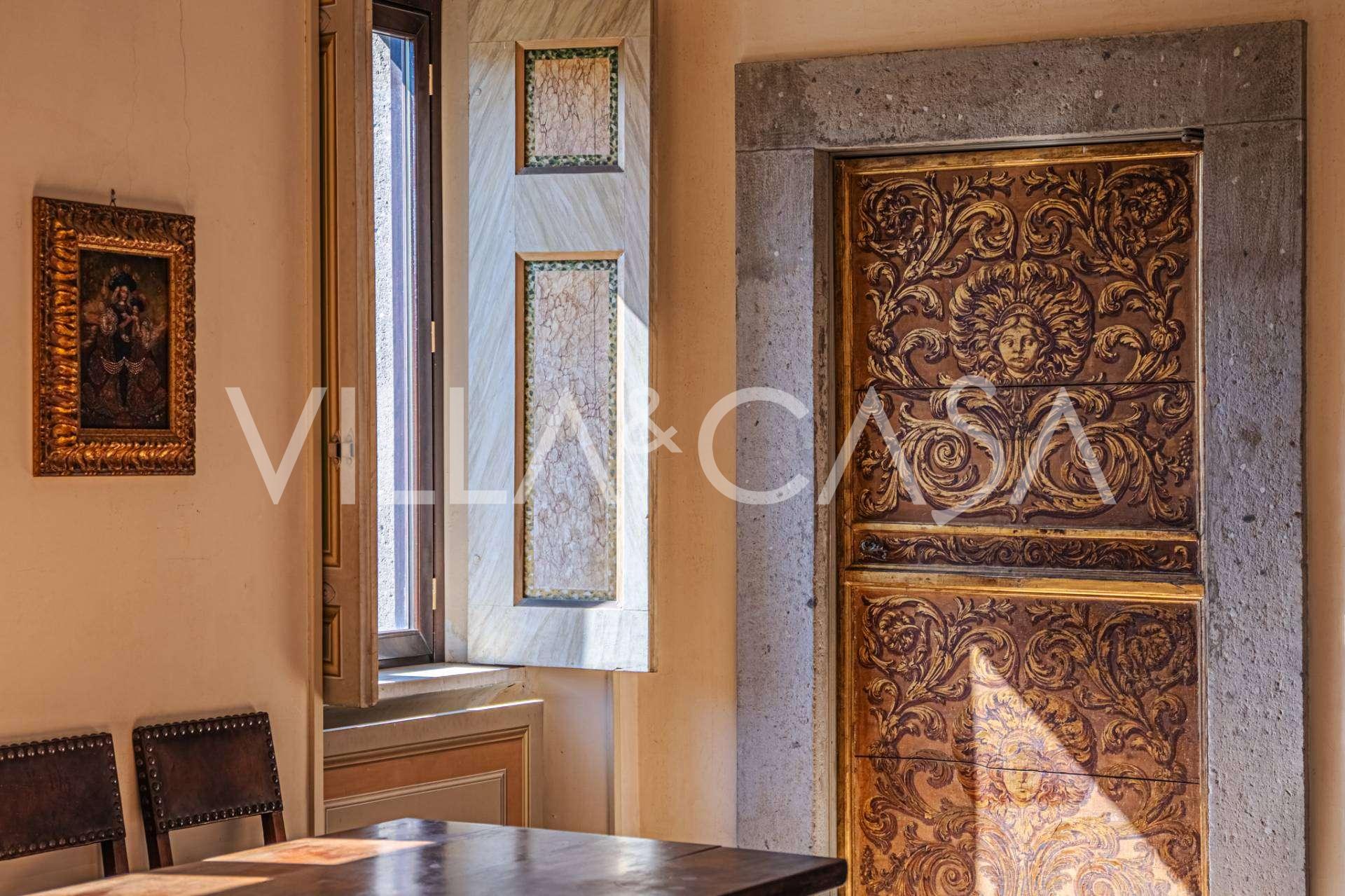 Στον πρώτο όροφο βρίσκονται ευρύχωροι χώροι υποδοχής, γραφείο, υπνοδωμάτιο, τρία μπάνια, εκλεπτυσμένη τραπεζαρία και μεγάλη κουζίνα που συνεχίζεται στο κάτω επίπεδο, όπου βρίσκεται αίθουσα δεξιώσεων, ιδανική για επίσημες εκδηλώσεις.