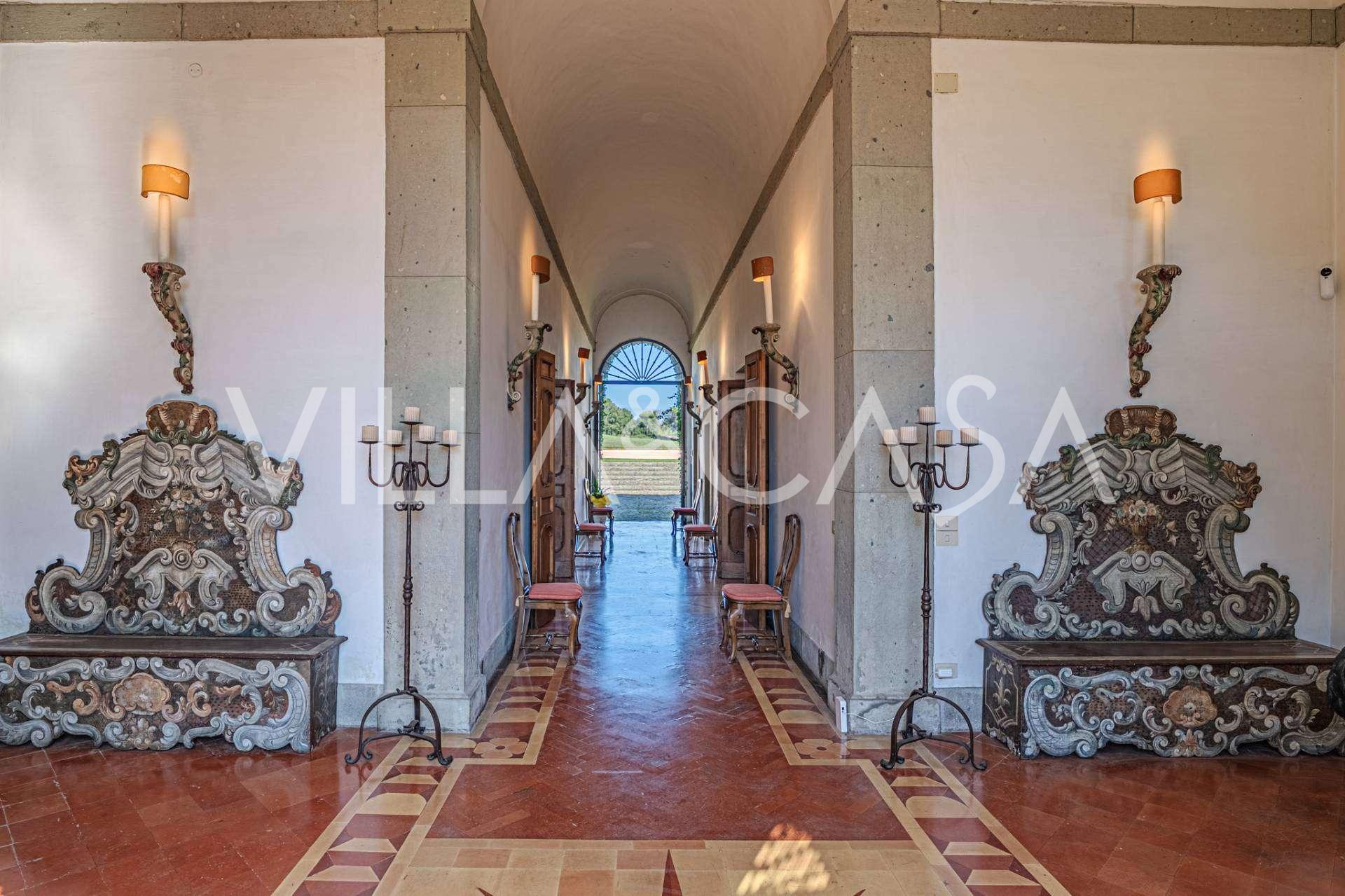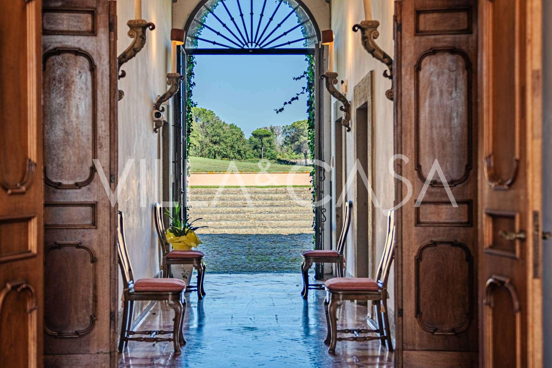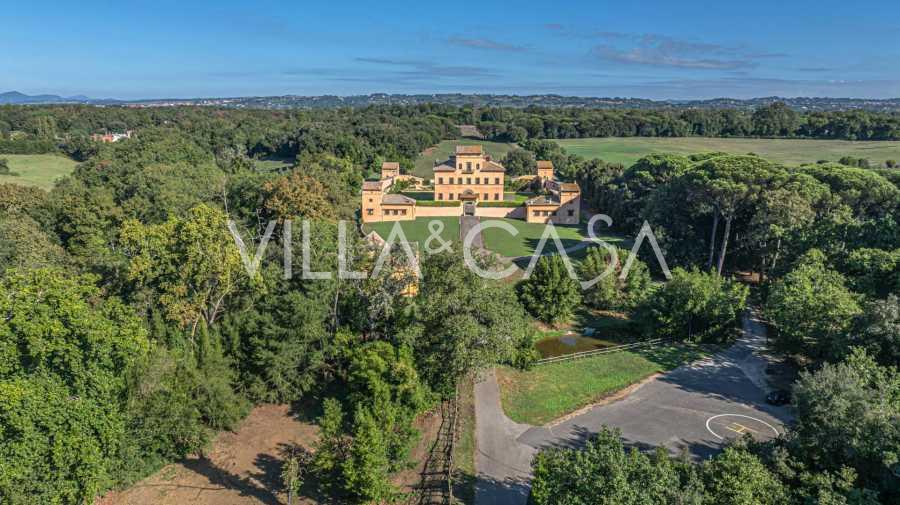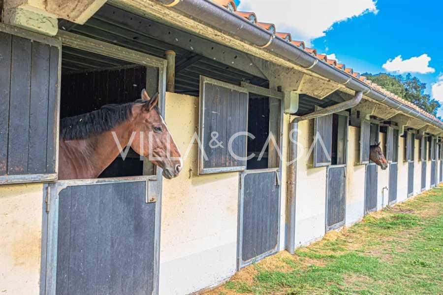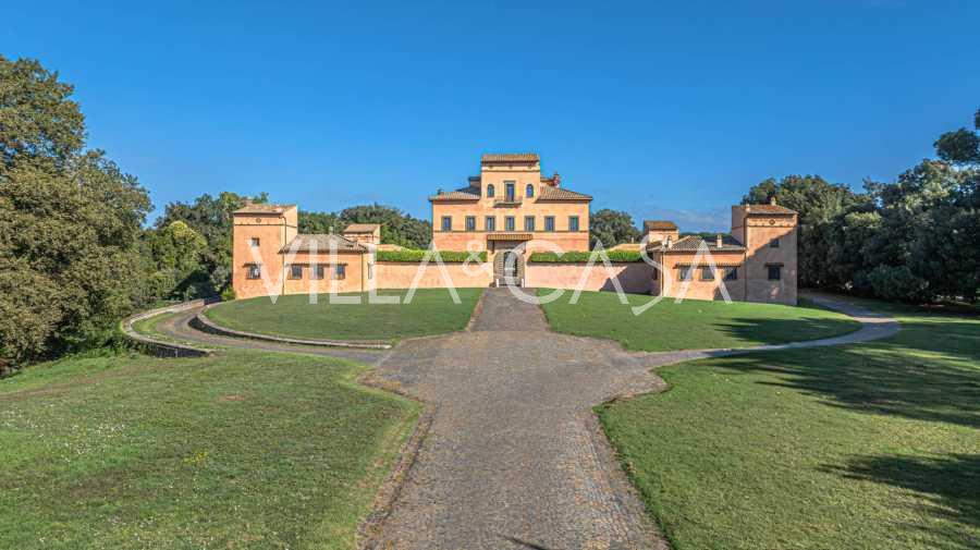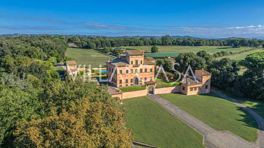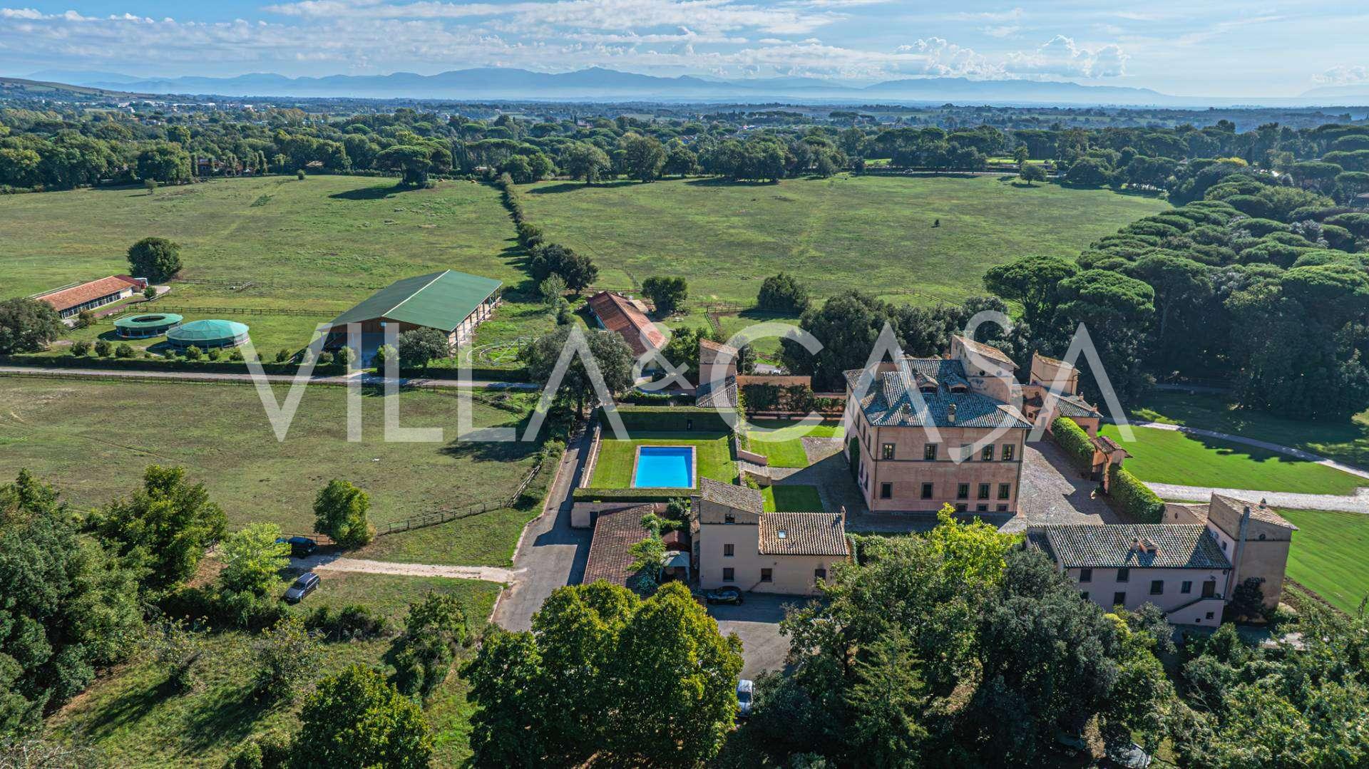 Βρίσκεται μόλις είκοσι χιλιόμετρα βόρεια της Ρώμης, το κάστρο περιβάλλεται από τριάντα εκτάρια καλλιεργημένων λιβαδιών και αρχαίων δασών, δημιουργώντας μια ατμόσφαιρα πλήρους απομόνωσης και αρμονίας με τη φύση. Εδώ γεννήθηκε το θρυλικό άλογο Ριμπότ. Οι ιππικές εγκαταστάσεις είναι εξοπλισμένες με τα καλύτερα διεθνή πρότυπα: δύο στάβλοι με είκοσι τρία και είκοσι πέντε κουτιά είναι εξοπλισμένα με δωμάτια σέλας, περιοχές για τη φροντίδα των αλόγων και άνετα διαμερίσματα για το προσωπικό. Στην περιοχή του συγκροτήματος υπάρχει κλειστός χώρος ιππασίας, κλειστή καρουζέλ, κλειστός χώρος και εκτεταμένα βοσκοτόπια για την εκτροφή αλόγων, ιδανικά για προπονήσεις και αγώνες. Το κάστρο γειτνιάζει με έναν από τους πιο φημισμένους γκολφ κλαμπ της Ευρώπης και διαθέτει δική του ελικοδρόμιο. Ιδιαίτερη γοητεία και ιστορική αξία στο μέρος προσδίδουν οι αρχαίες ετρουσκικές σπηλιές που βρίσκονται στην έκταση του κτήματος.