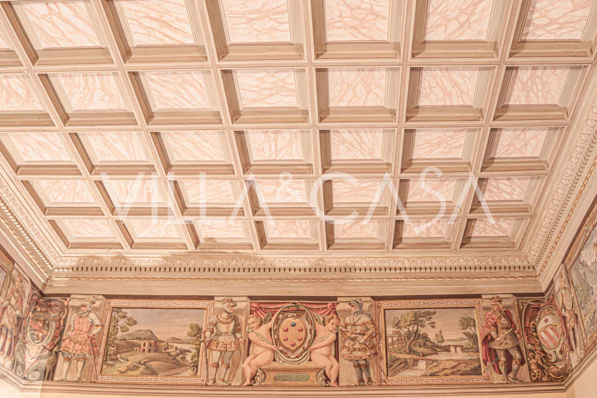 Στον δεύτερο όροφο υπάρχουν δύο επίσημοι χώροι με ζωγραφισμένες οροφές, δύο υπνοδωμάτια και δύο μπάνια.