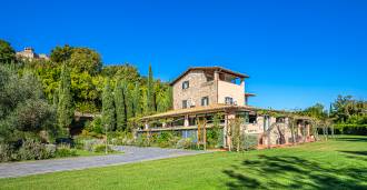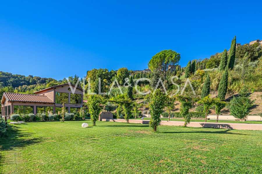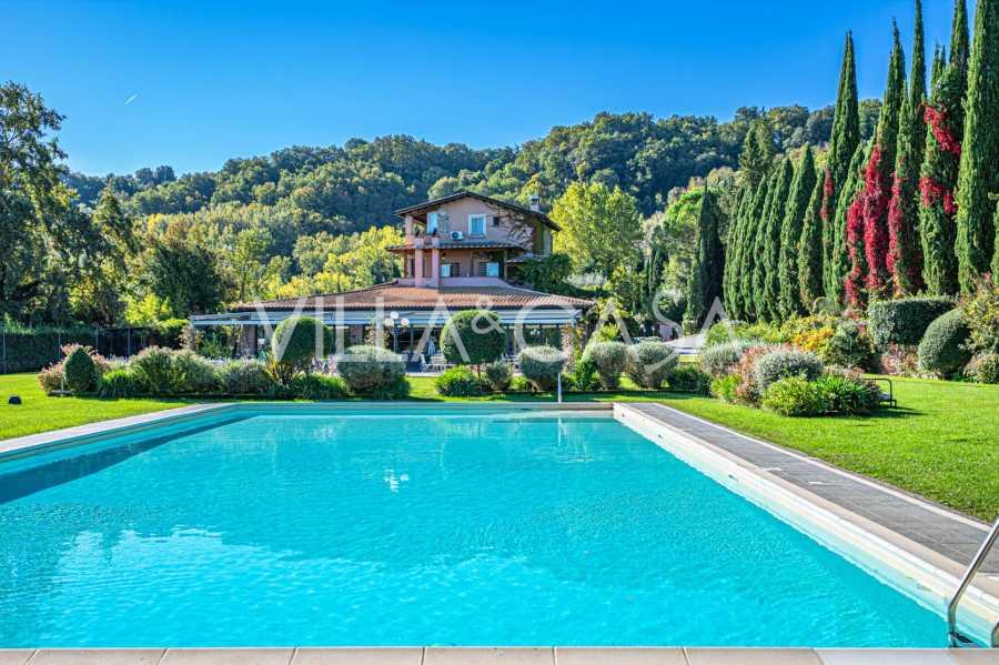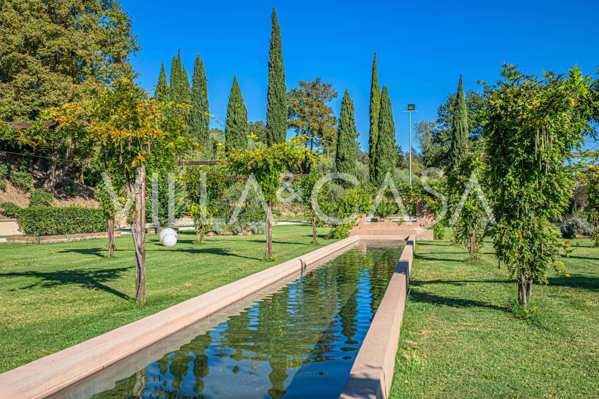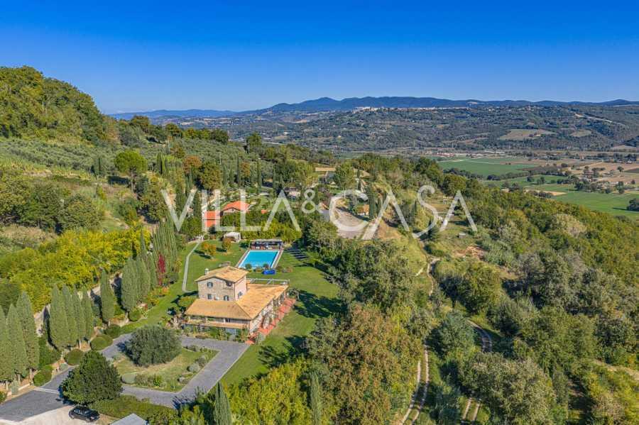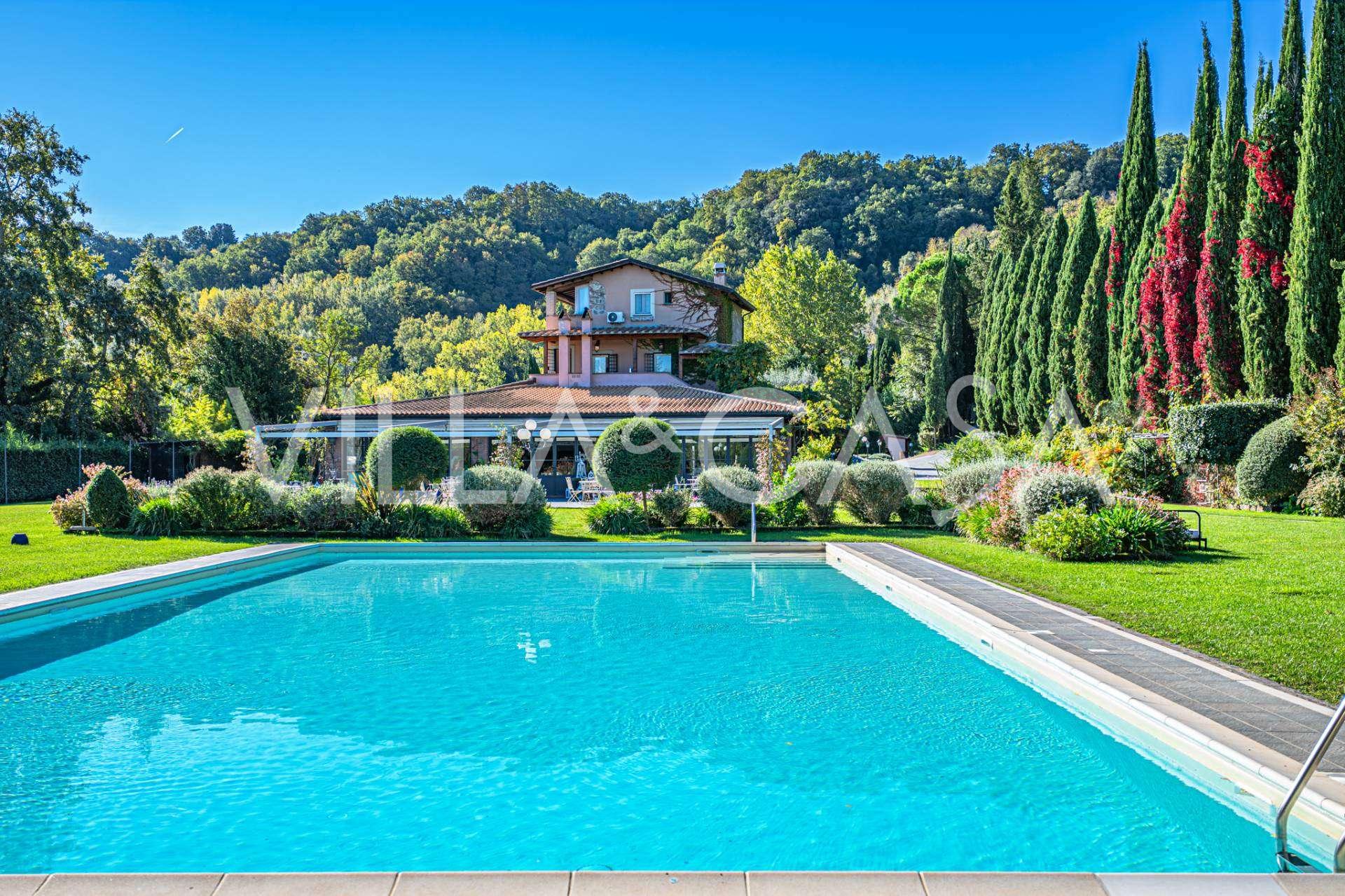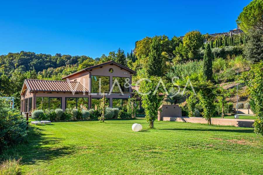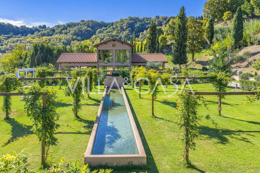 Στην επαρχία του Βιτέρμπο, στην κορυφή των λόφων, ανοίγεται μια εκπληκτική θέα στην κοιλάδα του Τίβερη. Το κτήμα καταλαμβάνει περίπου 25 εκτάρια καλοδιατηρημένου πάρκου, δημιουργώντας μια ατμόσφαιρα απόλυτης ηρεμίας και απομόνωσης. Κάθε γωνιά έχει σχεδιαστεί για άνεση, κομψότητα και αρμονία: ηλιόλουστες βεράντες, κιόσκια, κομψές ξαπλώστρες δίπλα στην πισίνα και σκιερές λεωφόροι, περιτριγυρισμένες από αιωνόβια δέντρα.