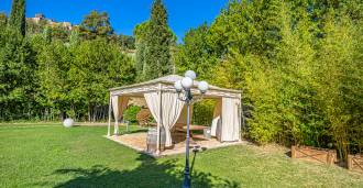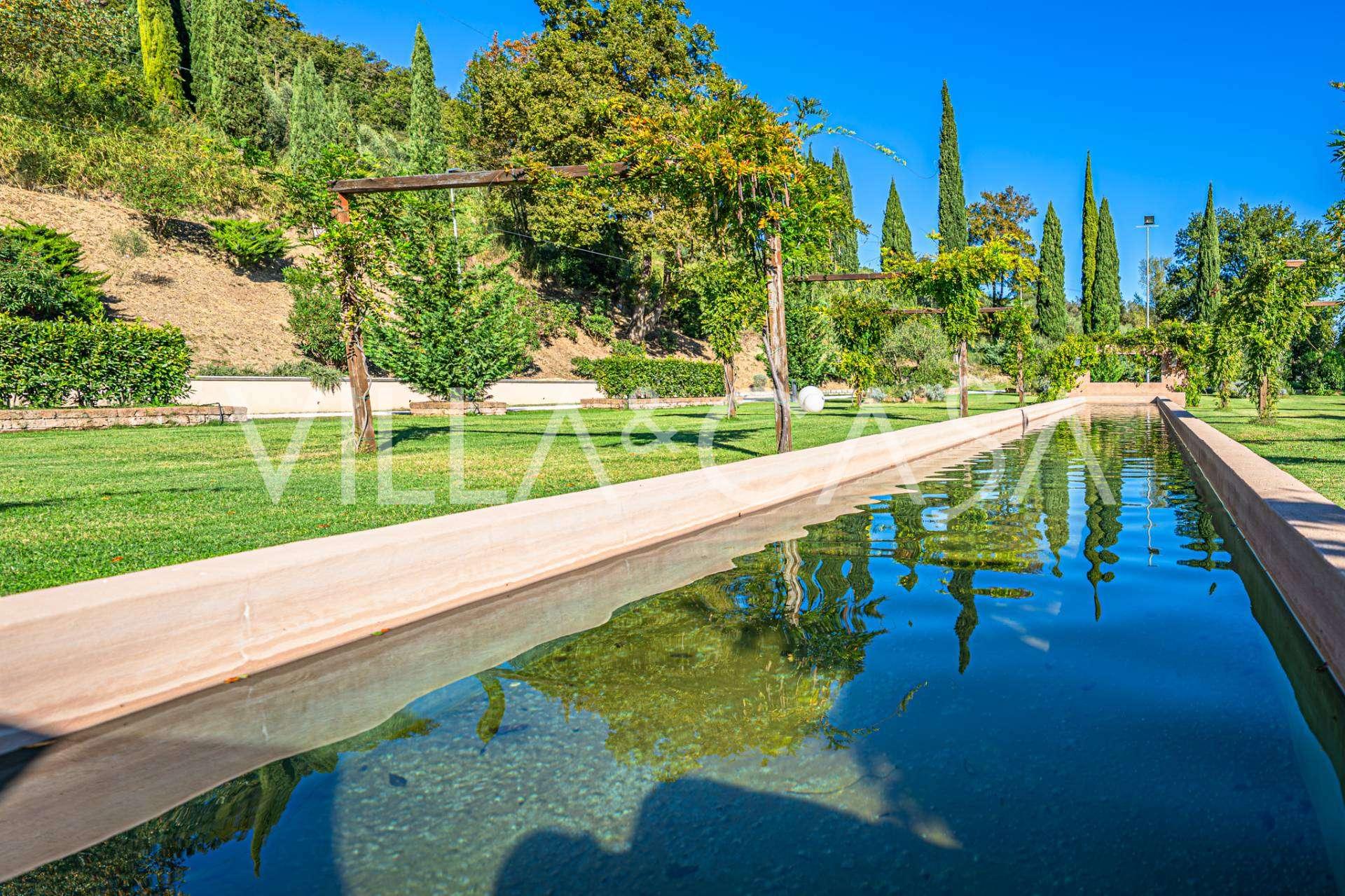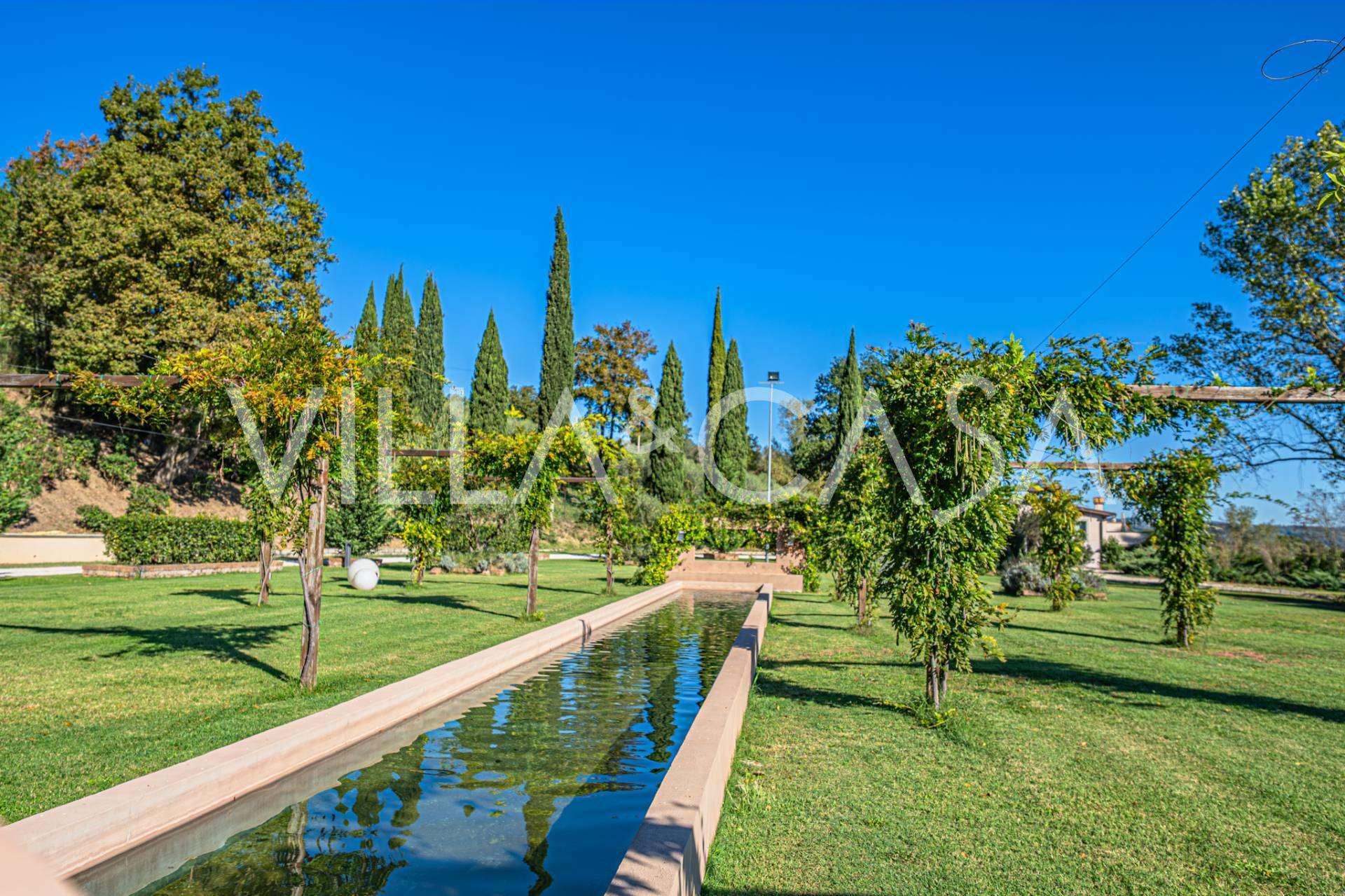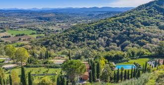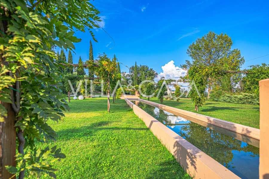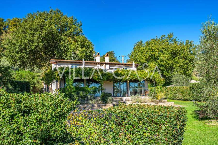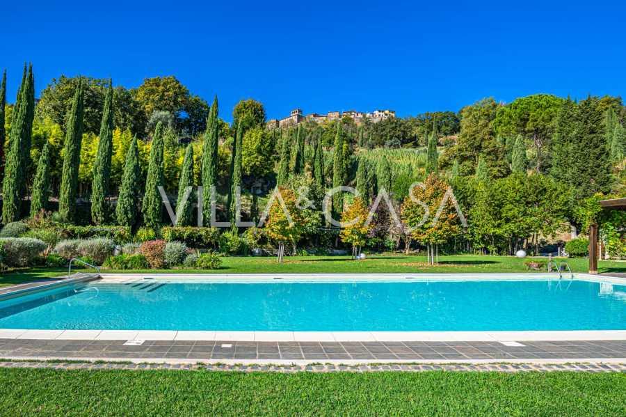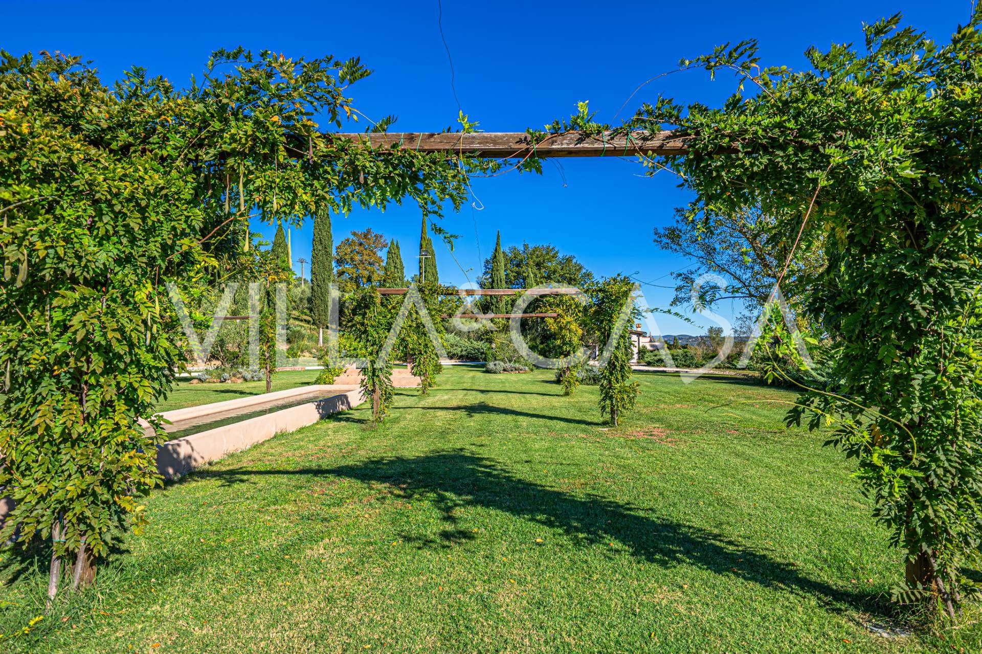 Στην επαρχία του Βιτέρμπο, στην κορυφή των λόφων, ανοίγεται μια εκπληκτική θέα στην κοιλάδα του Τίβερη. Το κτήμα καταλαμβάνει περίπου 25 εκτάρια καλοδιατηρημένου πάρκου, δημιουργώντας μια ατμόσφαιρα απόλυτης ηρεμίας και απομόνωσης. Κάθε γωνιά έχει σχεδιαστεί για άνεση, κομψότητα και αρμονία: ηλιόλουστες βεράντες, κιόσκια, κομψές ξαπλώστρες δίπλα στην πισίνα και σκιερές λεωφόροι, περιτριγυρισμένες από αιωνόβια δέντρα.