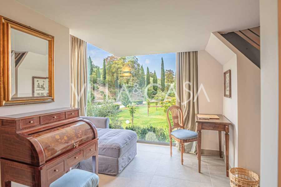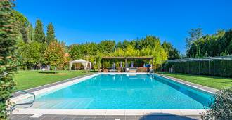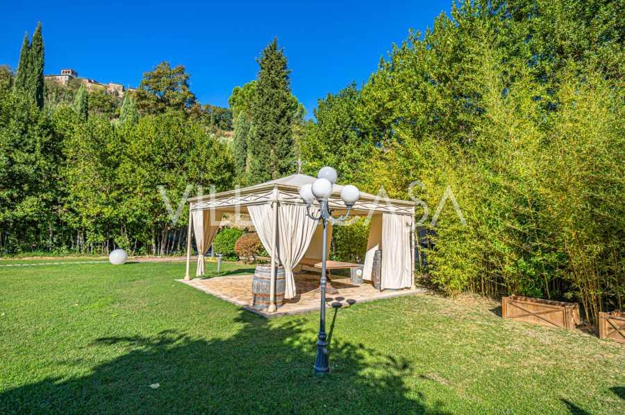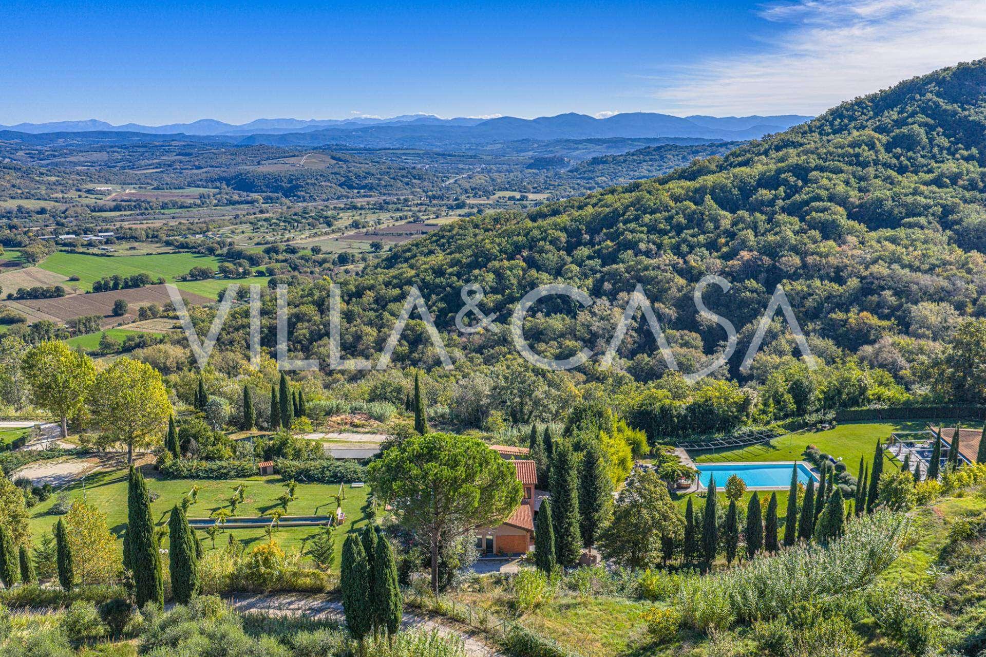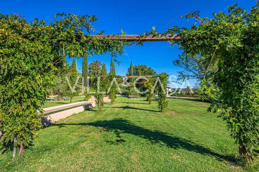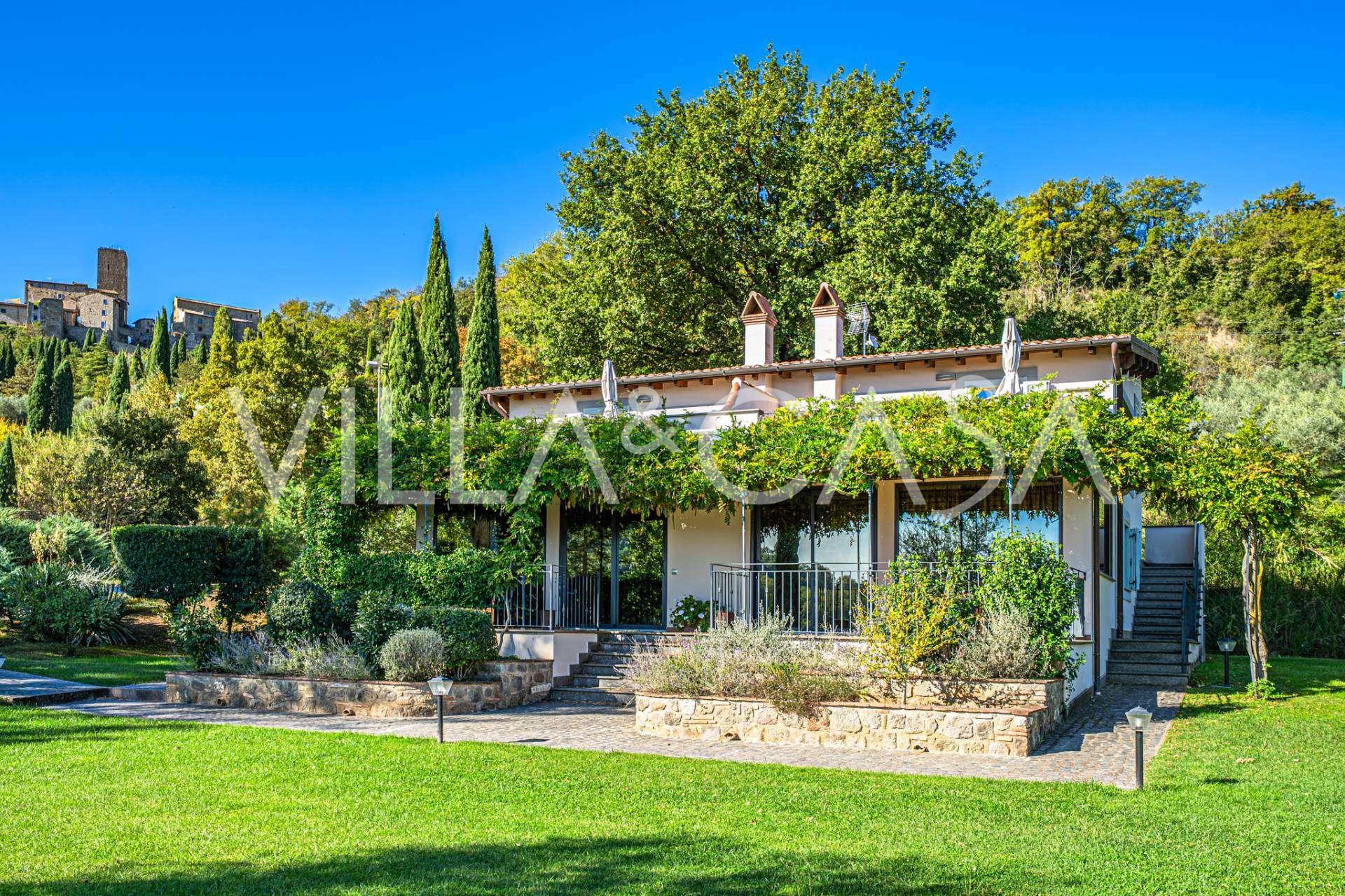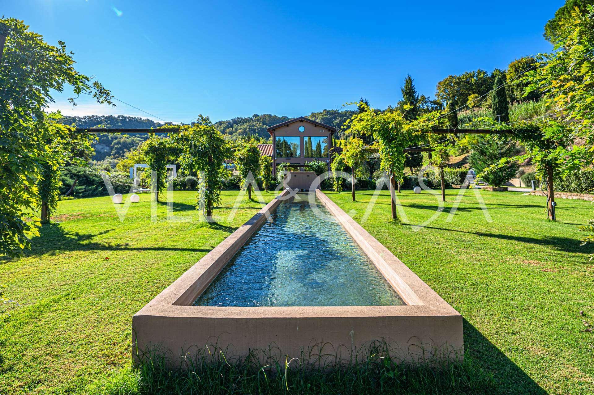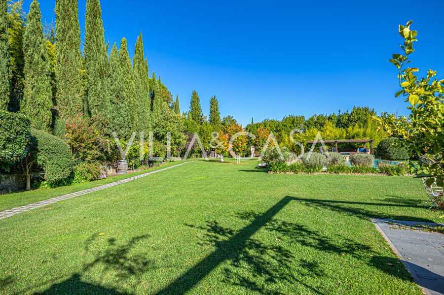 Στην επαρχία του Βιτέρμπο, στην κορυφή των λόφων, ανοίγεται μια εκπληκτική θέα στην κοιλάδα του Τίβερη. Το κτήμα καταλαμβάνει περίπου 25 εκτάρια καλοδιατηρημένου πάρκου, δημιουργώντας μια ατμόσφαιρα απόλυτης ηρεμίας και απομόνωσης. Κάθε γωνιά έχει σχεδιαστεί για άνεση, κομψότητα και αρμονία: ηλιόλουστες βεράντες, κιόσκια, κομψές ξαπλώστρες δίπλα στην πισίνα και σκιερές λεωφόροι, περιτριγυρισμένες από αιωνόβια δέντρα.