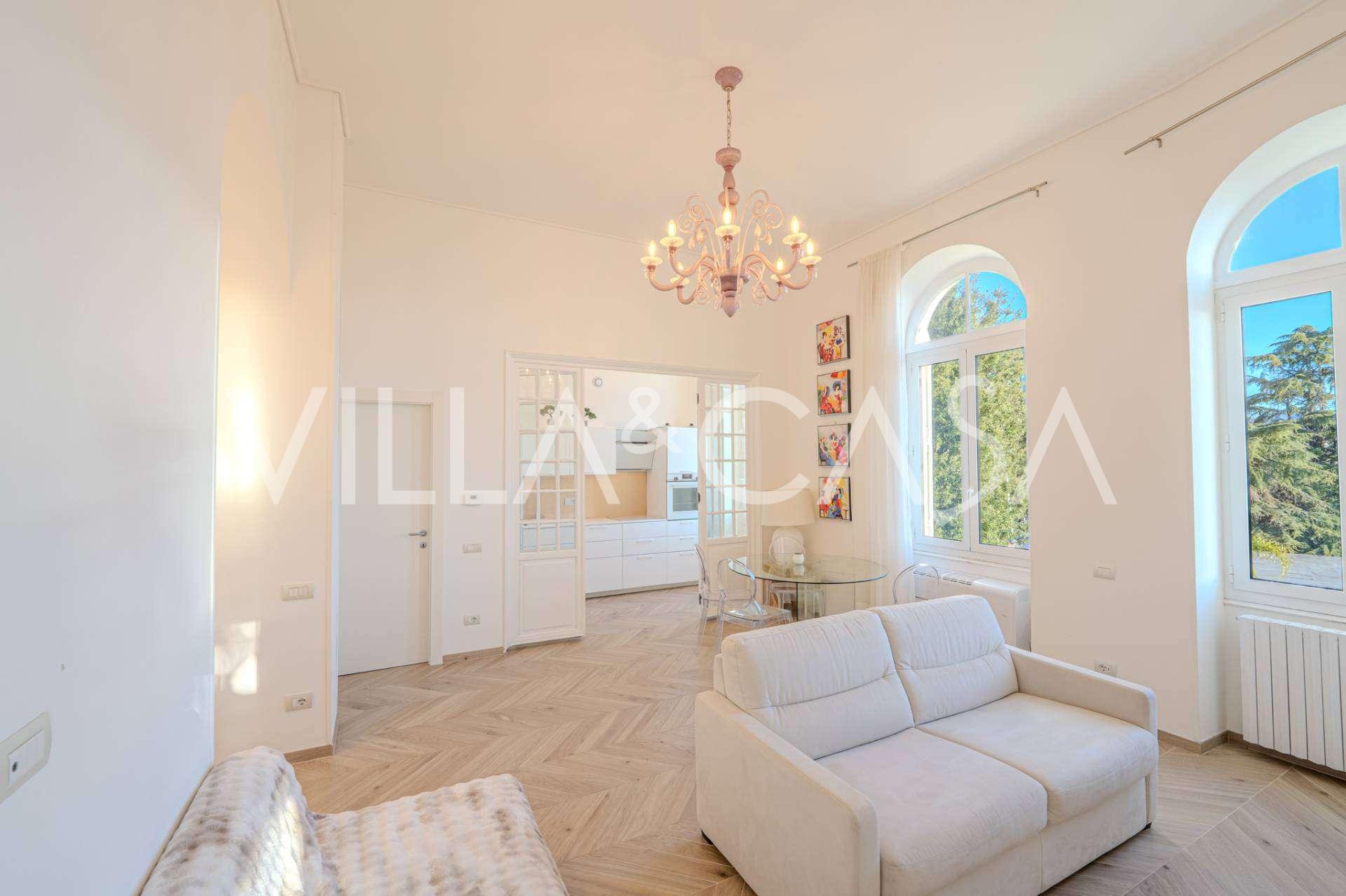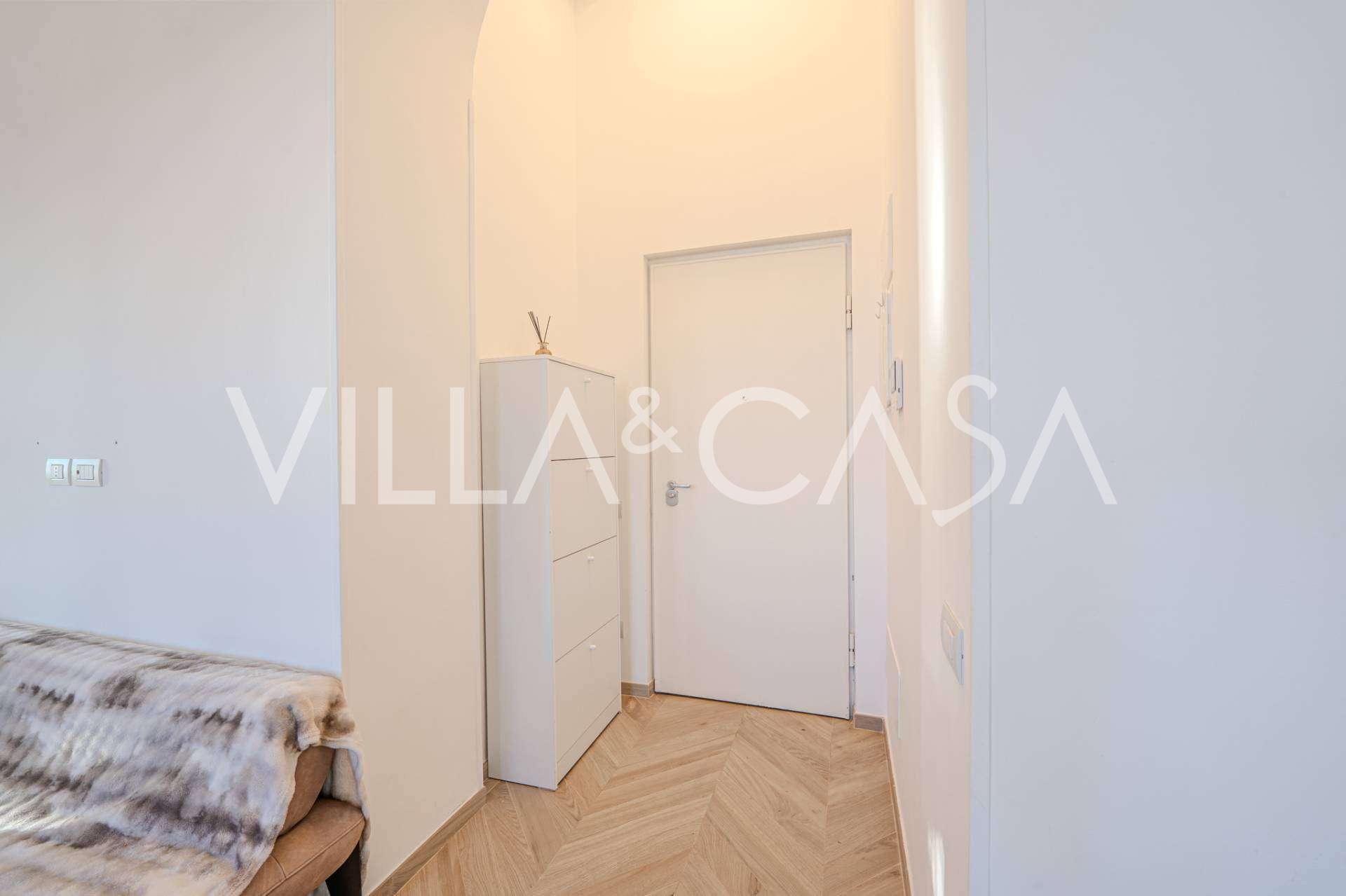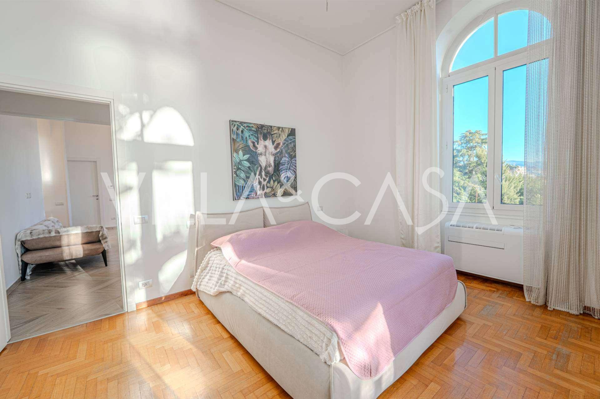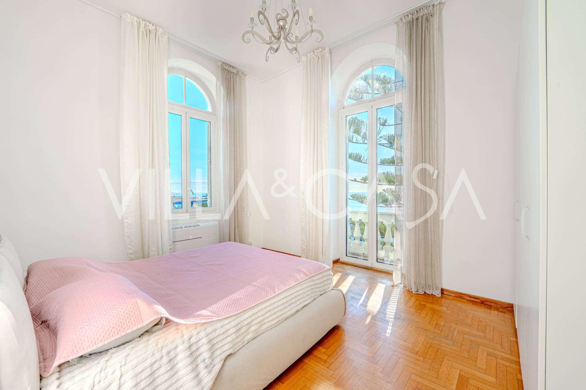 Στο Σανρέμο προσφέρεται προς ενοικίαση διαμέρισμα δύο δωματίων, επιφάνειας 73 τ.μ., με θέα στη θάλασσα. Βρίσκεται στον δεύτερο όροφο με ανελκυστήρα και περιλαμβάνει σαλόνι, υπνοδωμάτιο με μπαλκόνι, κουζίνα και μπάνιο. Το διαμέρισμα είναι σε άριστη κατάσταση: νέα παράθυρα, κλιματιστικό, παρκέ και αυτόνομη θέρμανση. Πλήρως επιπλωμένο. Στην τιμή περιλαμβάνεται θέση στάθμευσης σε γκαράζ. Το συγκρότημα είναι κλειστό και ήσυχο, με πισίνα, κήπο, χώρο αναψυχής και μπάρμπεκιου. Μόλις 7 λεπτά με τα πόδια από το κέντρο της πόλης και τη θάλασσα.