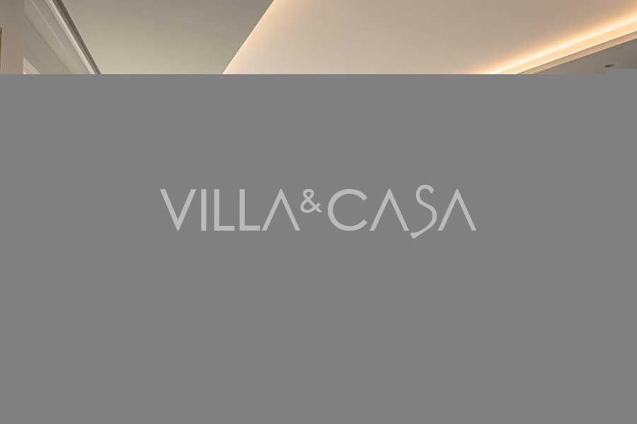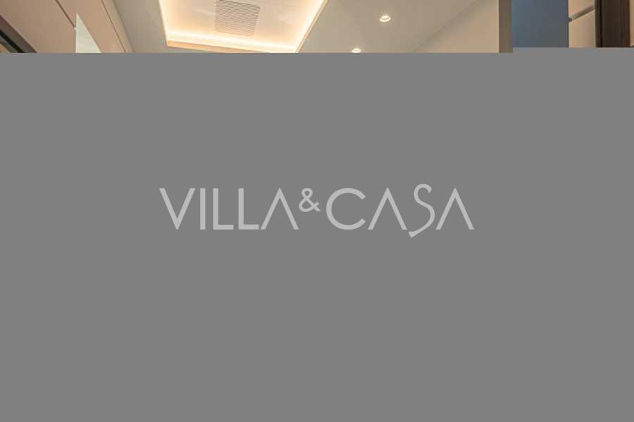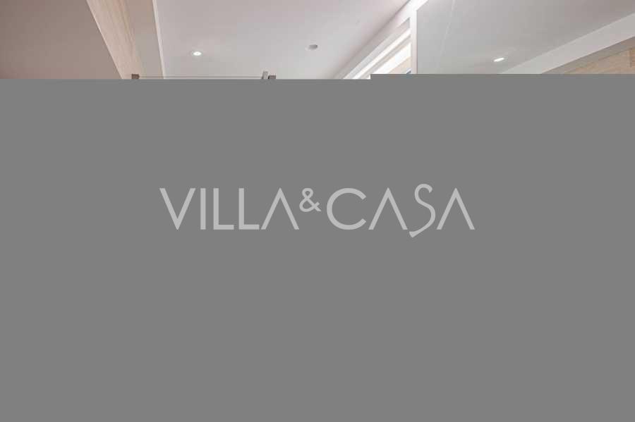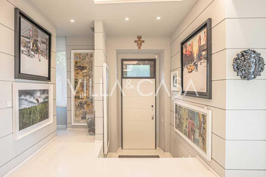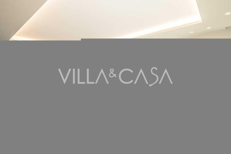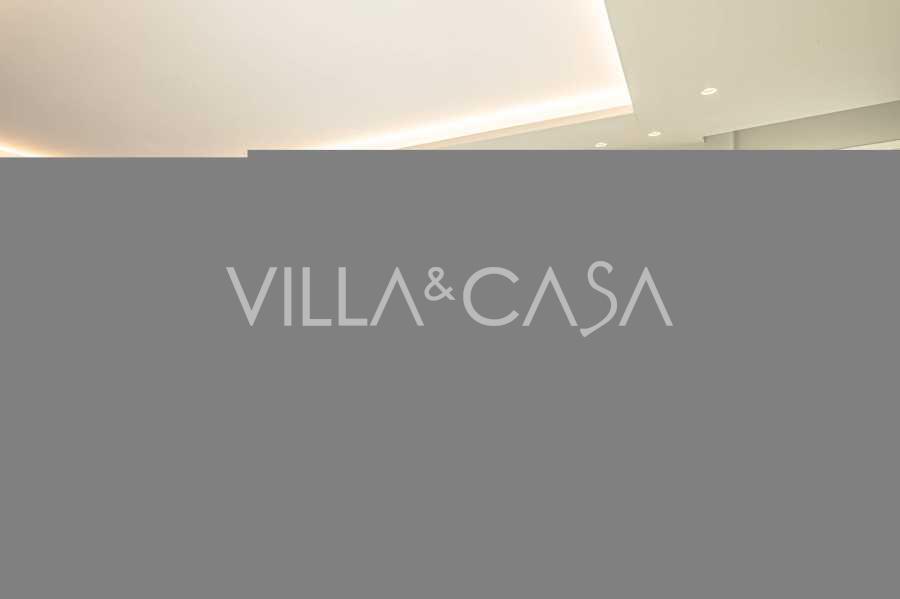 Το εσωτερικό διακρίνεται από ευρύχωρους και φωτεινούς χώρους, διακοσμημένους με υλικά υψηλότατης ποιότητας και εξοπλισμένους με ένα σύγχρονο ολοκληρωμένο σύστημα διαχείρισης σπιτιού, που επιτρέπει την έξυπνη διαχείριση του φωτισμού, της θέρμανσης και ψύξης δαπέδου, του κλιματισμού και της ασφάλειας μέσω ενός σύνθετου συστήματος συναγερμού.