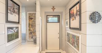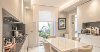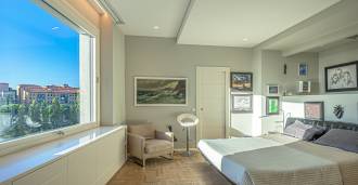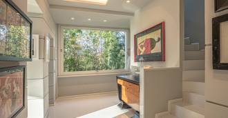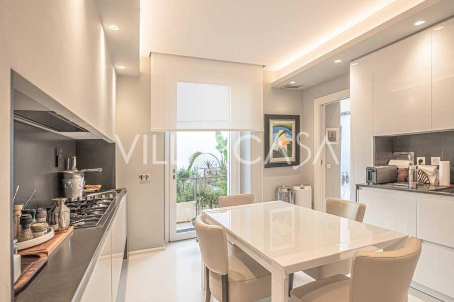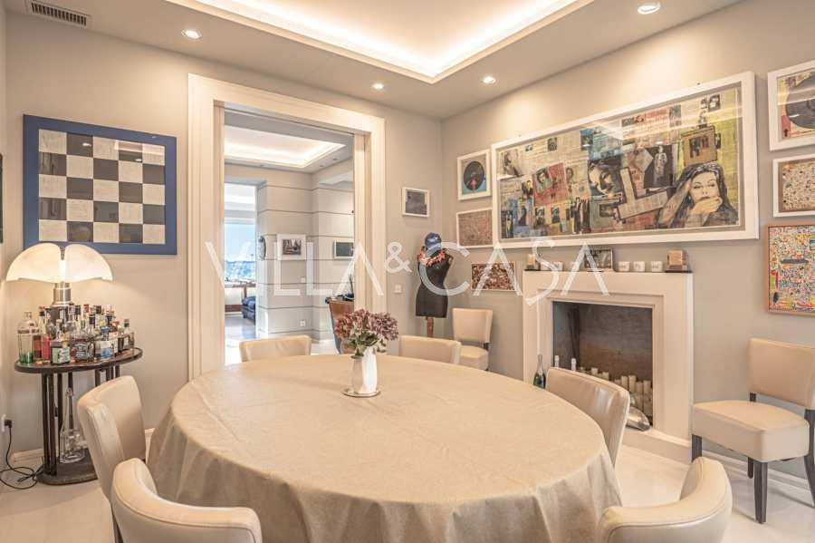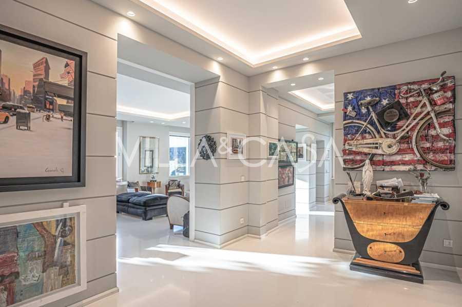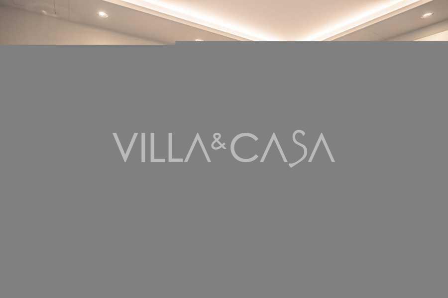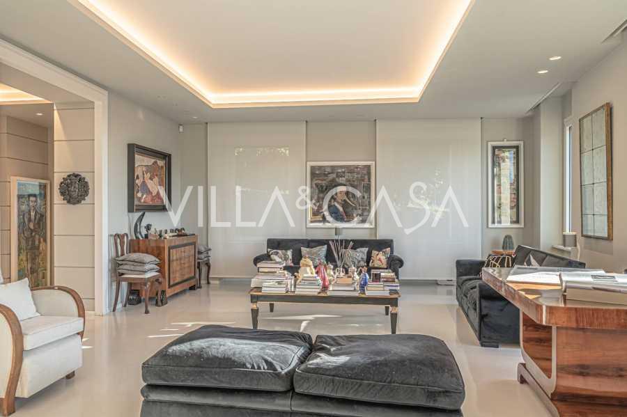 Το εσωτερικό διακρίνεται από ευρύχωρους και φωτεινούς χώρους, διακοσμημένους με υλικά υψηλότατης ποιότητας και εξοπλισμένους με ένα σύγχρονο ολοκληρωμένο σύστημα διαχείρισης σπιτιού, που επιτρέπει την έξυπνη διαχείριση του φωτισμού, της θέρμανσης και ψύξης δαπέδου, του κλιματισμού και της ασφάλειας μέσω ενός σύνθετου συστήματος συναγερμού.