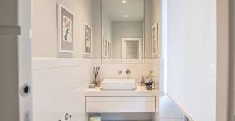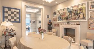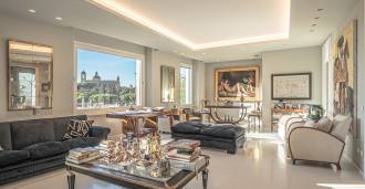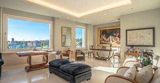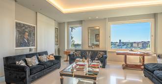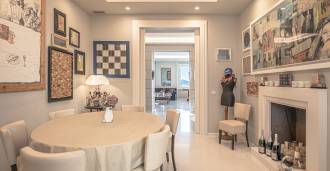 Στον πρώτο όροφο, μια ψηφιακή θωρακισμένη πόρτα οδηγεί σε ένα εκλεπτυσμένο καθιστικό ανοιχτού τύπου, ιδανικό για την υποδοχή επισκεπτών. Μια σύγχρονη, πλήρως εξοπλισμένη κουζίνα συνδέεται με την επίσημη τραπεζαρία, η οποία βγαίνει σε έναν γοητευτικό ιδιωτικό εσωτερικό κήπο: μια όαση ηρεμίας και απομόνωσης, ιδανική για χαλάρωση ή τη διοργάνωση αποκλειστικών εκδηλώσεων. Ένα κομψό μπάνιο επισκεπτών ολοκληρώνει αυτόν τον όροφο.