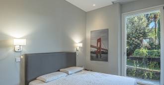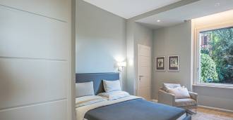Στον επάνω όροφο βρίσκεται η ζώνη ύπνου, που περιλαμβάνει τέσσερα ευρύχωρα υπνοδωμάτια, το καθένα με το δικό του μπάνιο, κατασκευασμένο από σχεδιαστικά υλικά. Η κύρια κρεβατοκάμαρα είναι επιπλέον εξοπλισμένη με ξεχωριστό γκαρνταρόμπα, σχεδιασμένη για μέγιστη άνεση και λειτουργικότητα.